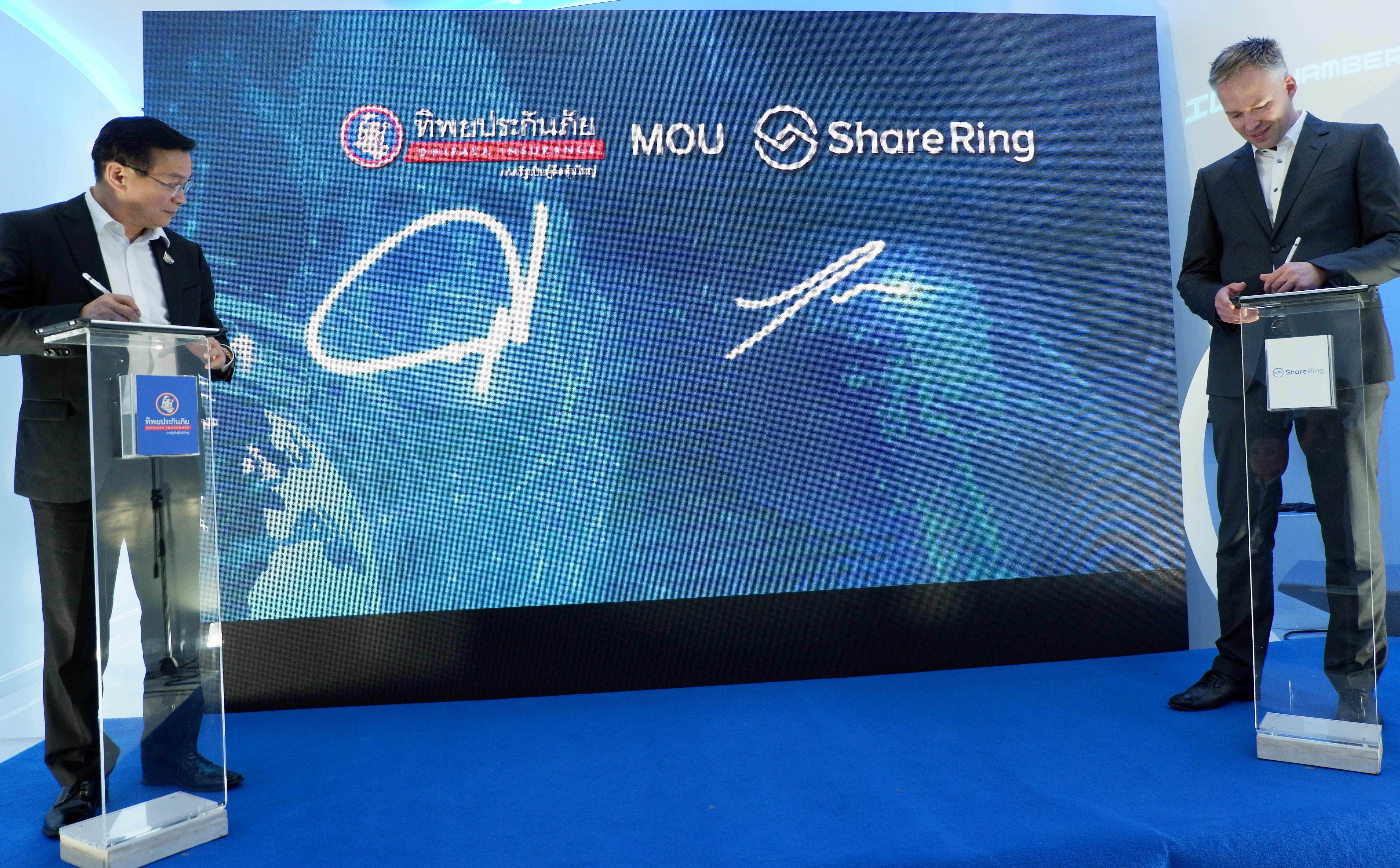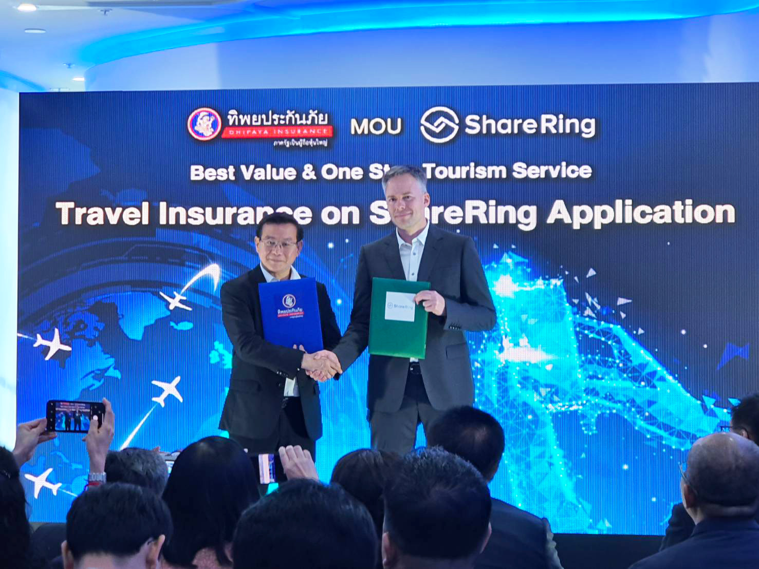 18 ธันวาคม 2562 : ดร.สมพร สืบถวิลกุล กรรมการผู้จัดการใหญ่ ทิพยประกันภัย ร่วมลงนามบันทึกข้อตกลงความร่วมมือ (MOU) กับ Mr. Tim Bos CEO ShareRing Application ผนึกกำลังเตรียมเปิดตัว “ShareRing Application” ครั้งแรกในประเทศไทยเพิ่มทางเลือกใหม่ให้กับนักเดินทาง เพื่อช่วยอำนวยความสะดวก ให้แก่นักเดินทาง