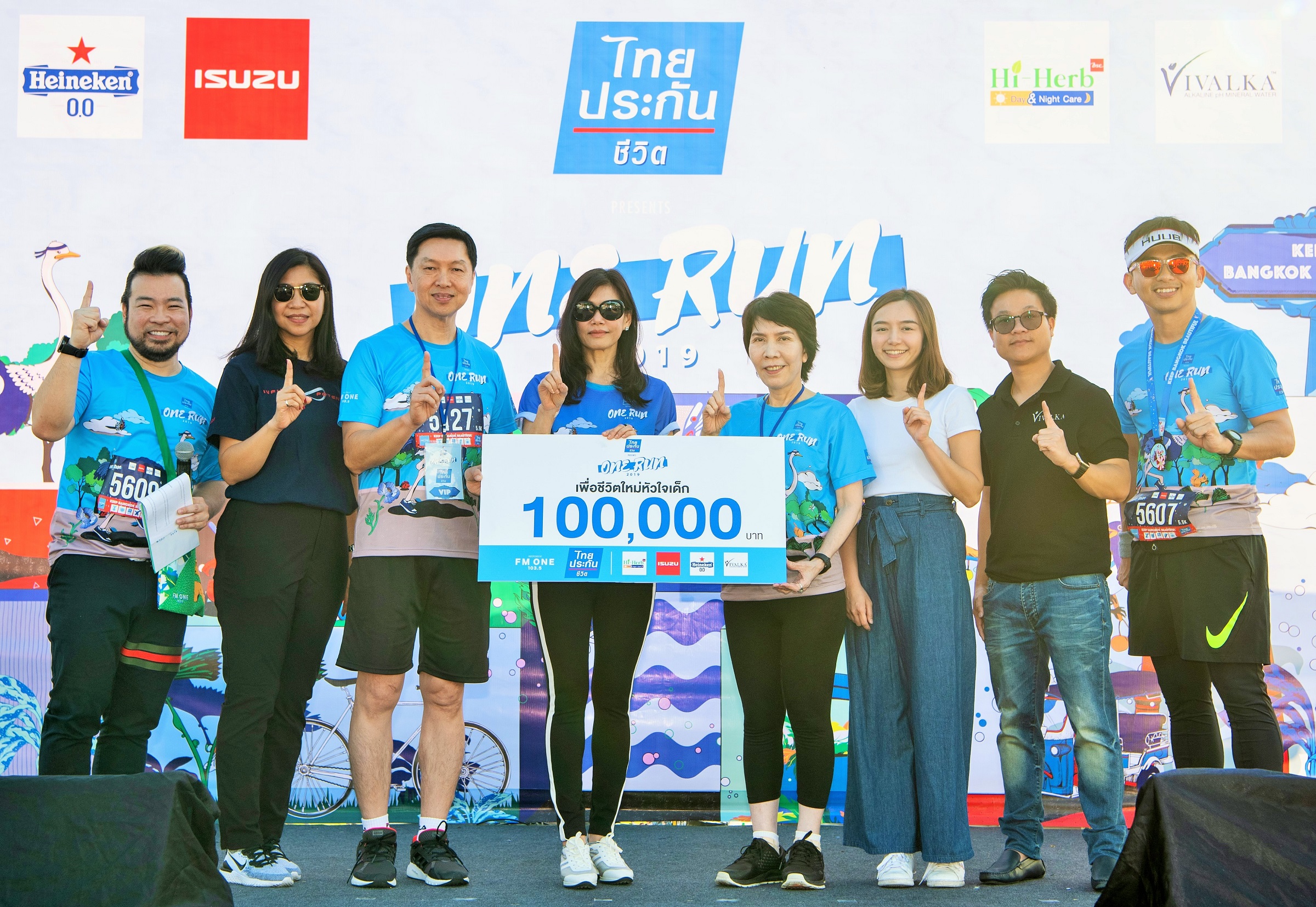 18 ธันวาคม 2562 : พิชัย ยอวิทยา ผู้ช่วยกรรมการผู้จัดการใหญ่ ฝ่ายกิจการตัวแทน บริษัท ไทยประกันชีวิต จำกัด (มหาชน) ร่วมมอบเงินบริจาคจำนวน 100,000 บาท จากกิจกรรม “ไทยประกันชีวิต Presents ONE RUN 2019” แก่นางสาวภาสินี ปรีชาธนาพล กรรมการและเลขานุการ มูลนิธิหนึ่งคนให้ หลายคนรับ เพื่อสมทบโครงการหนึ่งคนให้ หลายคนรับ เพื่อชีวิตใหม่หัวใจเด็ก สำหรับเป็นค่าใช้จ่ายในการผ่าตัดผู้ป่วยเด็กโรคหัวใจที่ขาดแคลน ณ ศูนย์กีฬาทางน้ำบึงหนองบอน ![]()