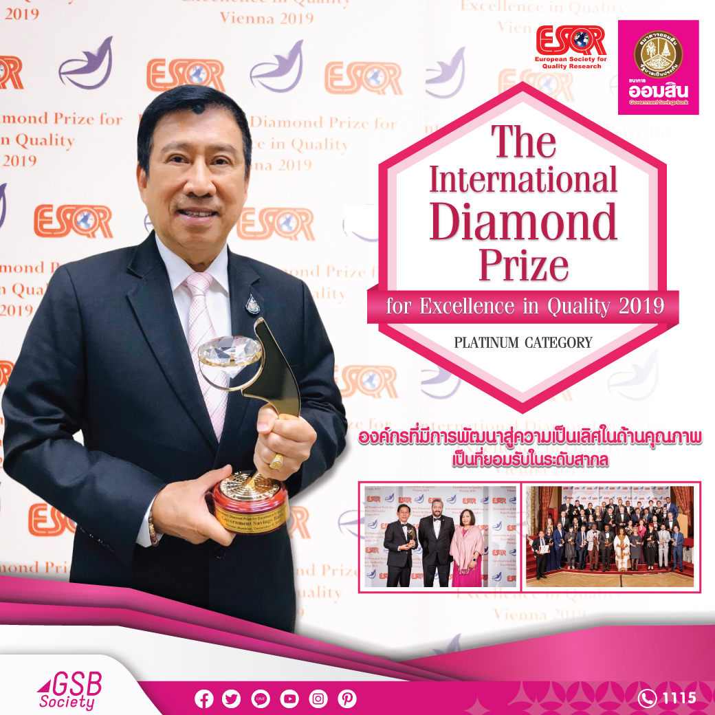 20 ธันวาคม 2562 : โดยรางวัล The International Diamond Prize for Excellence in Quality จาก ESQR (The European Society for Quality Research) เป็นรางวัลที่มอบให้กับบริษัท องค์กรทั้งภาครัฐและเอกชนต่างๆ ทั่วโลก ทั้งจากทวีปยุโรป เอเชีย อเมริกา แอฟริกา และ ออสเตรเลีย ที่มีความพยายามในการพัฒนาและได้รับการยอมรับในความก้าวหน้าที่เหนือกว่า มีความเป็นเลิศในภาพรวม และมีความมุ่งมั่นและรับผิดชอบต่อการพัฒนาเศรษฐกิจทั้งต่อตนเองและสังคม