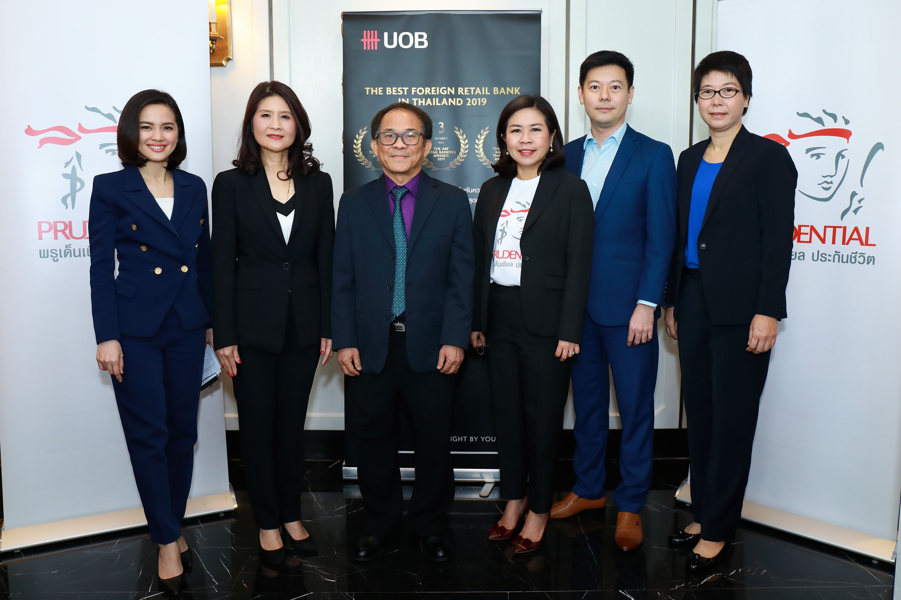 กรุงเทพฯ, ประเทศไทย, 23 ธันวาคม 2562 : บริษัท พรูเด็นเชียล ประกันชีวิต (ประเทศไทย) จำกัด (มหาชน) (“พรูเด็นเชียล ประเทศไทย”) ร่วมมือกับพันธมิตรทางธุรกิจ ธนาคารยูโอบี จำกัด (มหาชน) เดินหน้ามอบประสบการณ์สุดเอ็กซ์คลูซีฟ จัดสัมมนาด้านการลงทุนในช่วงเศรษฐกิจผันผวน ด้วยการปลดล็อคการซื้อประกันชีวิตแบบใหม่ พร้อมให้ความรู้เรื่องการลงทุนอย่างเหมาะสม และตอบสนองความต้องการของลูกค้า ผ่านมุมมองของผู้เชี่ยวชาญด้านการลงทุนอย่าง ดร.นิเวศน์ เหมวชิรวรากร (ที่ 3 จากซ้าย) นักลงทุนหุ้นคุณค่า พร้อมกับ คุณสุวัสสา อนันทะสะ ผู้ช่วยกรรมการผู้จัดการใหญ่ Sales & Distribution ธนาคารยูโอบี (ไทย) (ที่ 2 จากซ้าย) ที่มาพูดคุยถึงรายละเอียดของประกันชีวิตควบการลงทุน หรือ ยูนิต ลิงค์ ที่ตอบโจทย์แก่นักลงทุนในปัจจุบันเป็นอย่างมาก