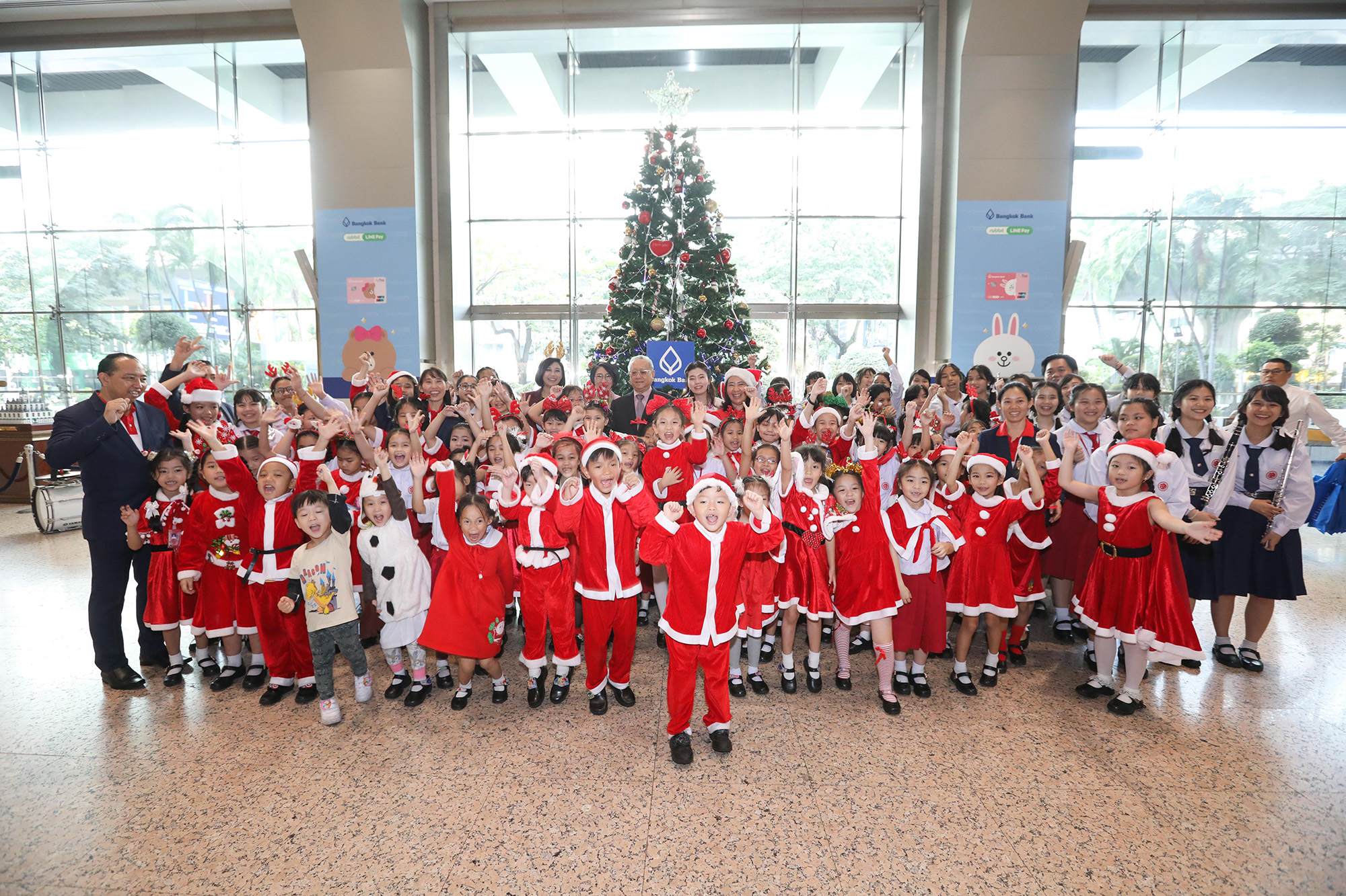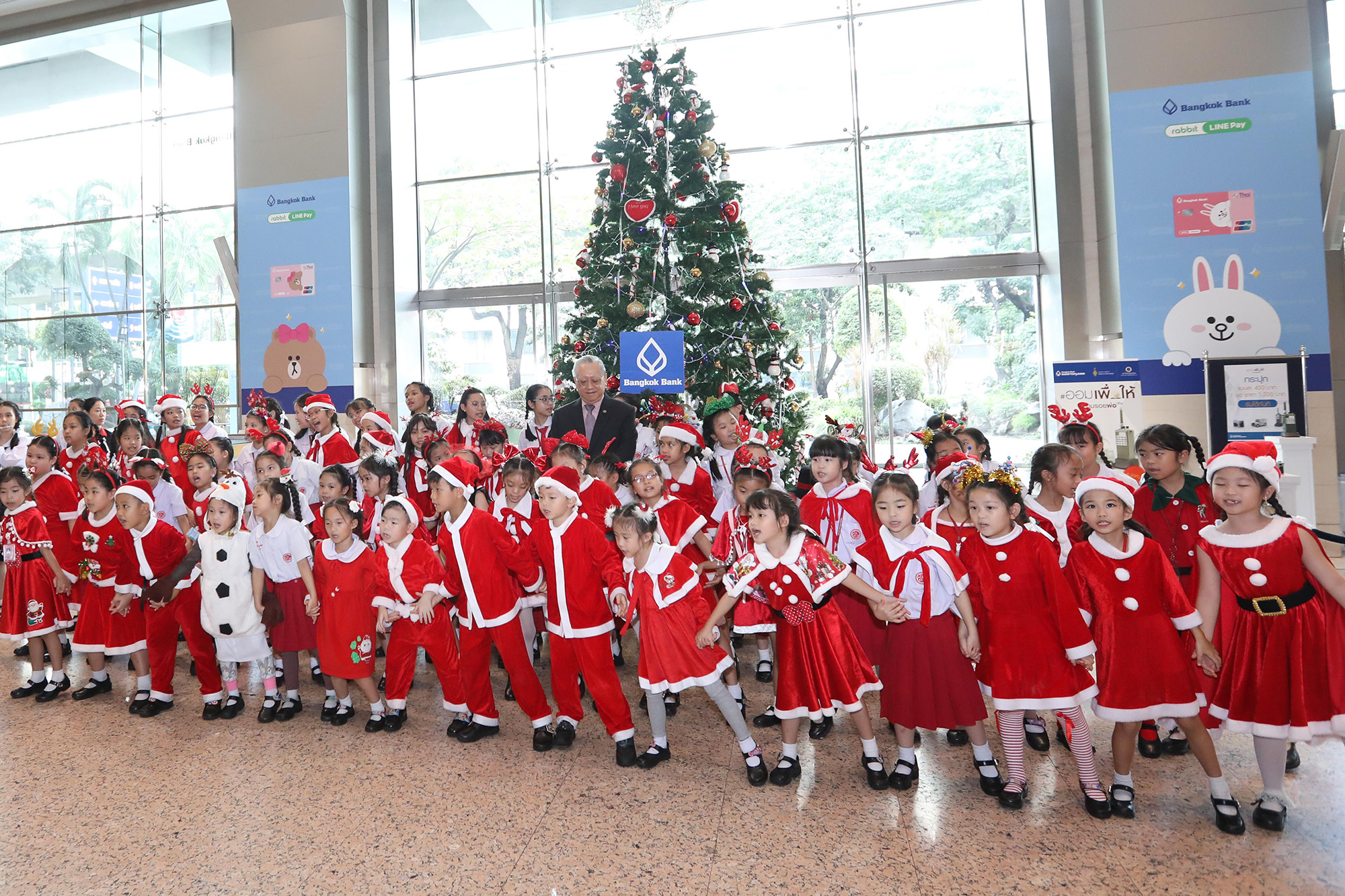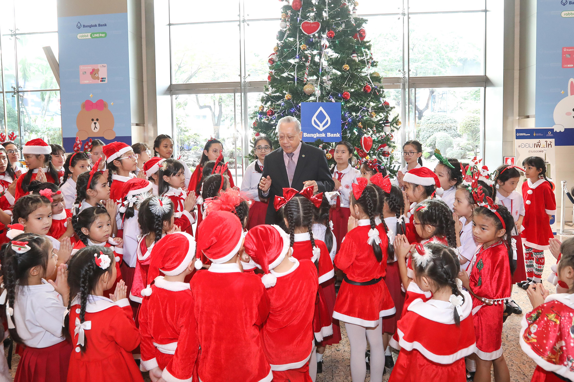 24 ธันวาคม 2562 : ปิติ สิทธิอำนวย ประธานกรรมการ ธนาคารกรุงเทพ จำกัด (มหาชน) ให้การต้อนรับเหล่าซ้านต้าตัวน้อยๆ ซึ่งเป็นนักเรียนโรงเรียนอัสสัมชัญศึกษา จำนวนกว่า 100 คน ในโอกาสเดินทางมาร้องเพลงอวยพรวันคริสต์มาส เพื่อส่งมอบความสุขให้กับผู้บริหารและลูกค้าของธนาคารบริเวณโถงบริการทางการเงิน อาคารสำนักงานใหญ่ ถนนสีลม ด้วยความสดใสน่ารักและสนุกสนานของบรรดาซานต้าตัวน้อยๆ นับเป็นการสร้างบรรยากาศและส่งมอบความสุขในช่วงเทศกาลคริสต์มาส และปีใหม่ที่กำลังจะมาถึงได้เป็นอย่างดี ![]()