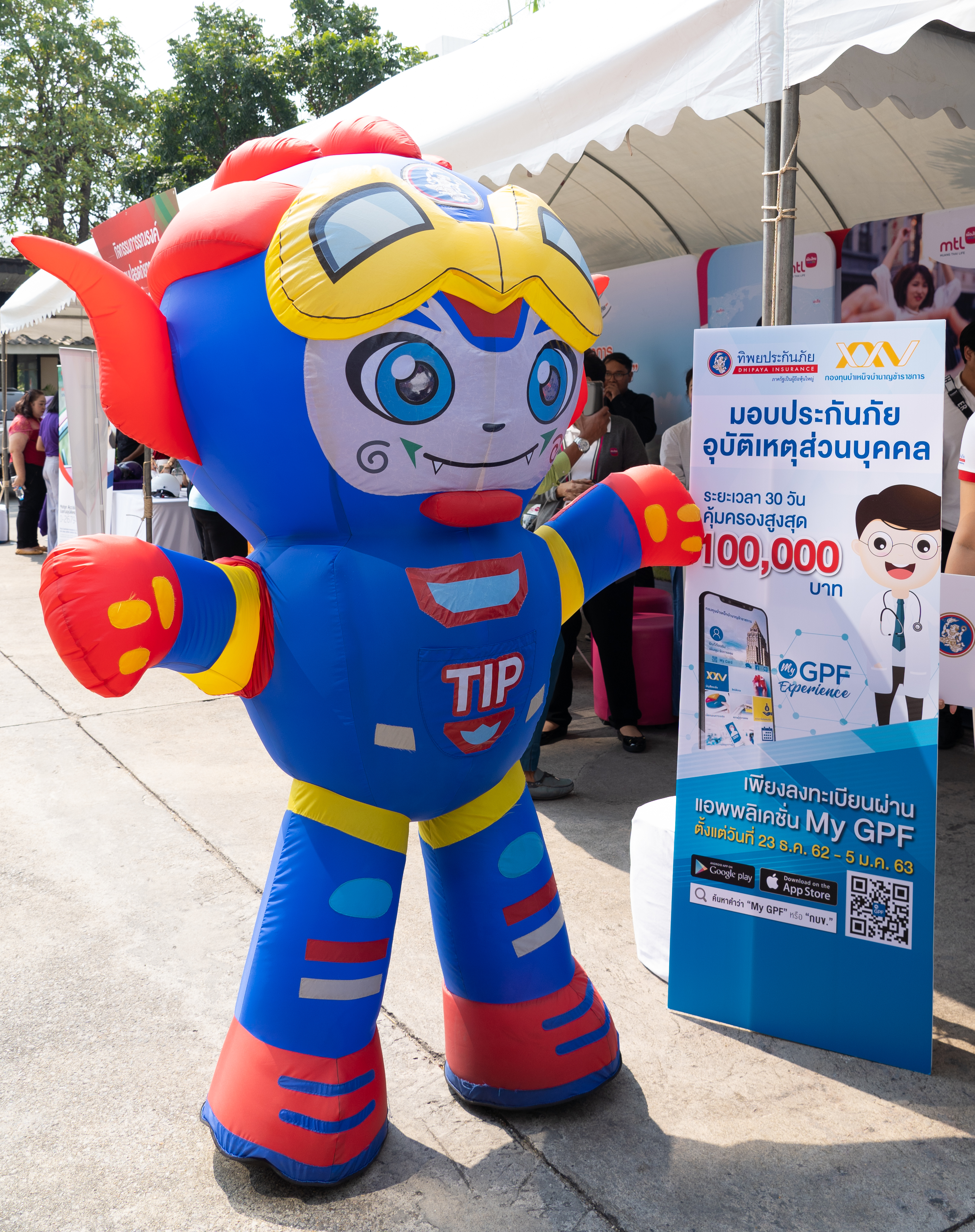 โดยทิพยประกันภัย ได้มอบหมวกนิรภัยให้แก่ โรงเรียนวัดช่องนนทรี จำนวน 500 ใบ พร้อมออกบูธแนะนำและมอบกรมธรรม์ประกันภัยอุบัติเหตุส่วนบุคคล ระยะเวลา 30 วัน คุ้มครองสูงสุด 100,000 บาท ให้กับสมาชิกกองทุนบำเหน็จบำนาญข้าราชการ (กบข.) ซึ่งสมาชิก กบข. สามารถรับสิทธิ์ได้โดยลงทะเบียนผ่านแอปพลิเคชัน My GPF ณ สำนักงาน คปภ. ถนนรัชดาภิเษก กรุงเทพฯ ![]()