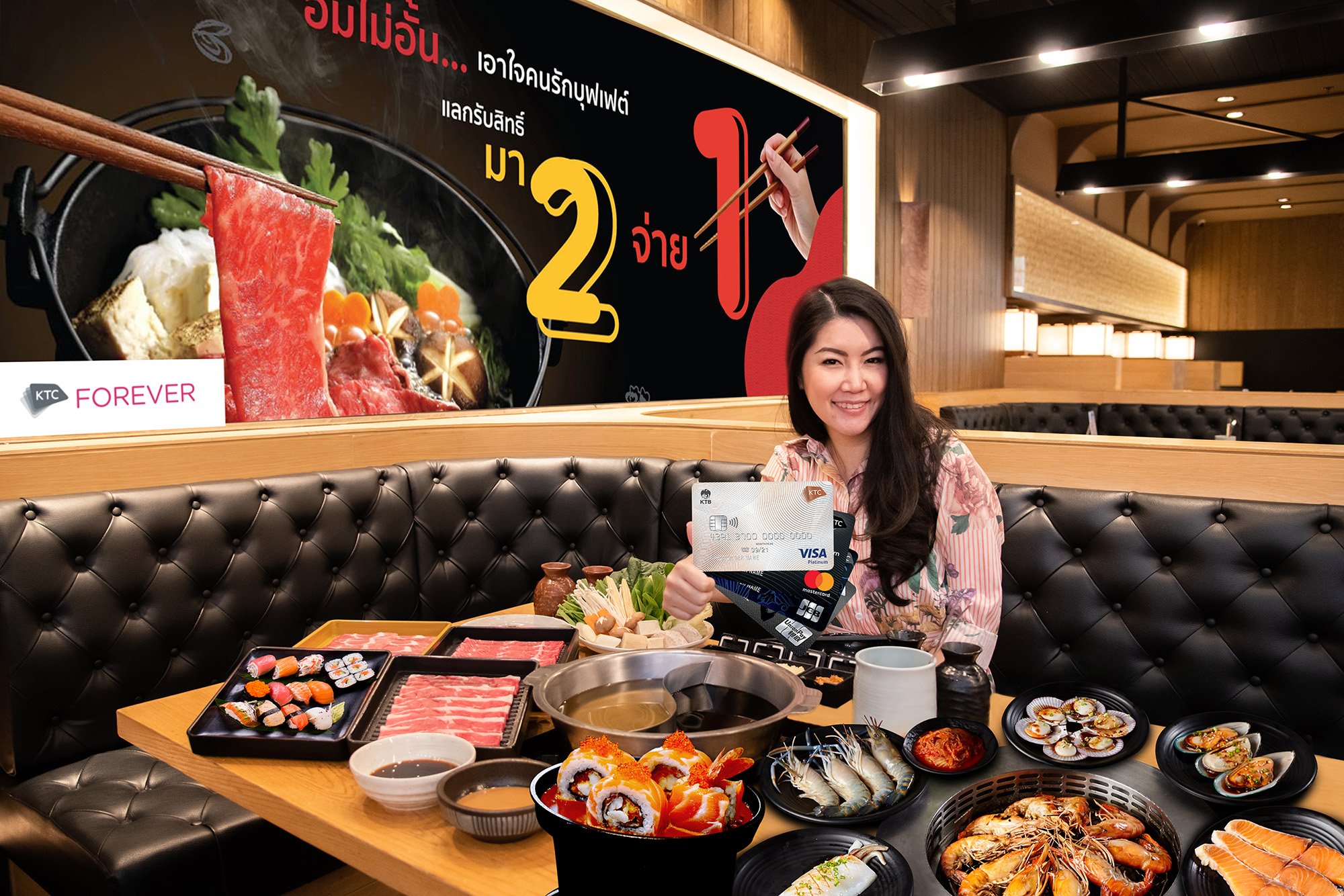 26 ธันวามคม 2562 : นางประณยา นิถานานนท์ ผู้อำนวยการ – ธุรกิจบัตรเครดิต “เคทีซี” หรือ บริษัท บัตรกรุงไทย จำกัด (มหาชน) จัดหนักให้สมาชิกพบกับขบวนความอร่อยของเมนูบุฟเฟ่ต์ที่หลากหลาย ทั้งปิ้ง ย่าง ชาบู สุกี้ยากี้ และอีกมากมาย ณ ร้านบุฟเฟ่ต์ชื่อดังกว่า 40 ร้านค้าที่ร่วมรายการ เช่น อะคิโยชิ / คิงคอง บุฟเฟ่ต์ / โม โม พาราไดซ์ / ยูแอนด์ไอ / มอนสเตอร์บีฟ / โอซาก้า บุฟเฟ่ต์ / โทระ ยากินิคุ x คาเฟ่ / เท็นโจ ซูชิ & ยากินิกุพรีเมี่ยม และ พิซซ่า ฮัท เป็นต้น แลกรับสิทธิ์มา 2 จ่าย 1 โดยชำระด้วยบัตรเครดิตเคทีซีและใช้คะแนน KTC FOREVER เริ่มต้นเพียง 999 คะแนน ระหว่างวันที่ 1 พฤศจิกายน 2562 – 31 มกราคม 2563