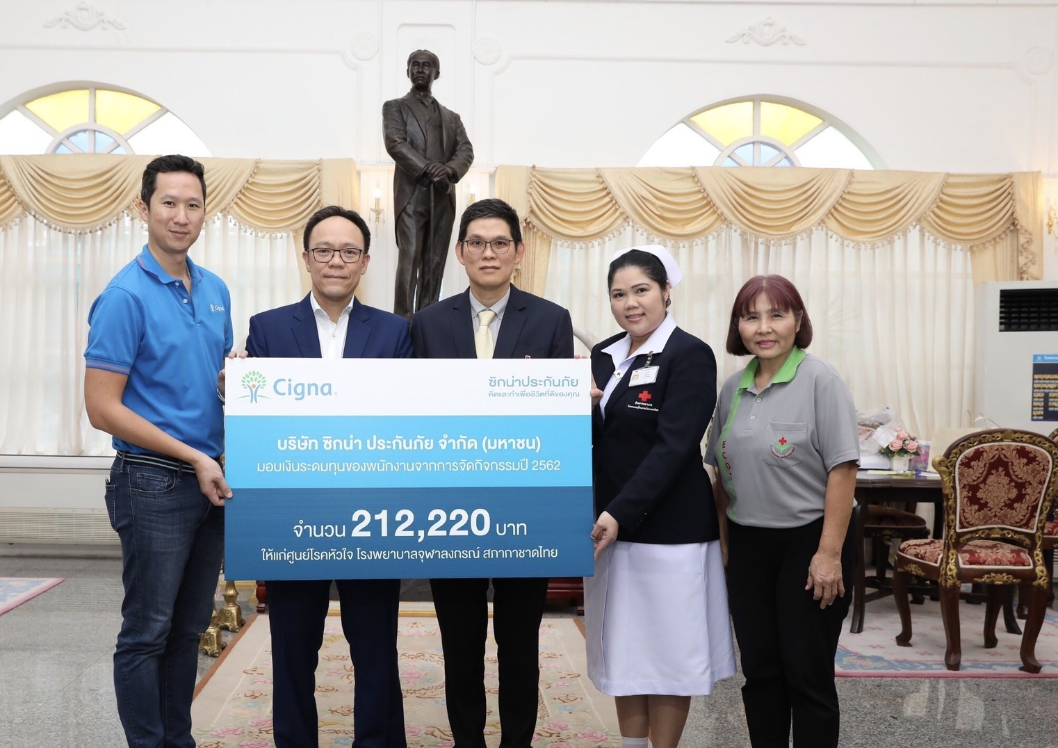 26 ธันวาคม 2562 : บมจ. ซิกน่า ประกันภัย บริษัทผู้เชี่ยวชาญด้านประกันสุขภาพจากประเทศสหรัฐอเมริกา ที่มีพันธกิจในการช่วยพัฒนาสุขภาพ ชีวิต และความเป็นอยู่ของลูกค้าให้ดีขึ้น นำโดย ธีรวุฒิ สุธนะเสรีพร ประธานเจ้าหน้าที่บริหารและ กฤษฐ์หิรัญ อริยมหาพงศ์ รองผู้อำนวยการฝ่ายสื่อสารการตลาด มอบรายได้หลังหักค่าใช้จ่ายจากงานวิ่งสลายเครียด “Cigna Run Therapy 2019” และรายได้จากกิจกรรมภายในของพนักงาน มูลค่ารวมกว่า 1,600,000 บาท ให้กับศูนย์โรคหัวใจ โรงพยาบาลจุฬาลงกรณ์ สภากาชาดไทย เพื่อช่วยเหลือผู้ป่วยโรคหัวใจและส่งเสริมให้คนไทยกลับมามีสุขภาพหัวใจที่แข็งแรง โดยมี ศ.นพ. รื่นเริง ลีลานุกรม รองผู้อำนวยการฝ่ายบริการ โรงพยาบาลจุฬาลงกรณ์ เป็นตัวแทนรับมอบ ![]()