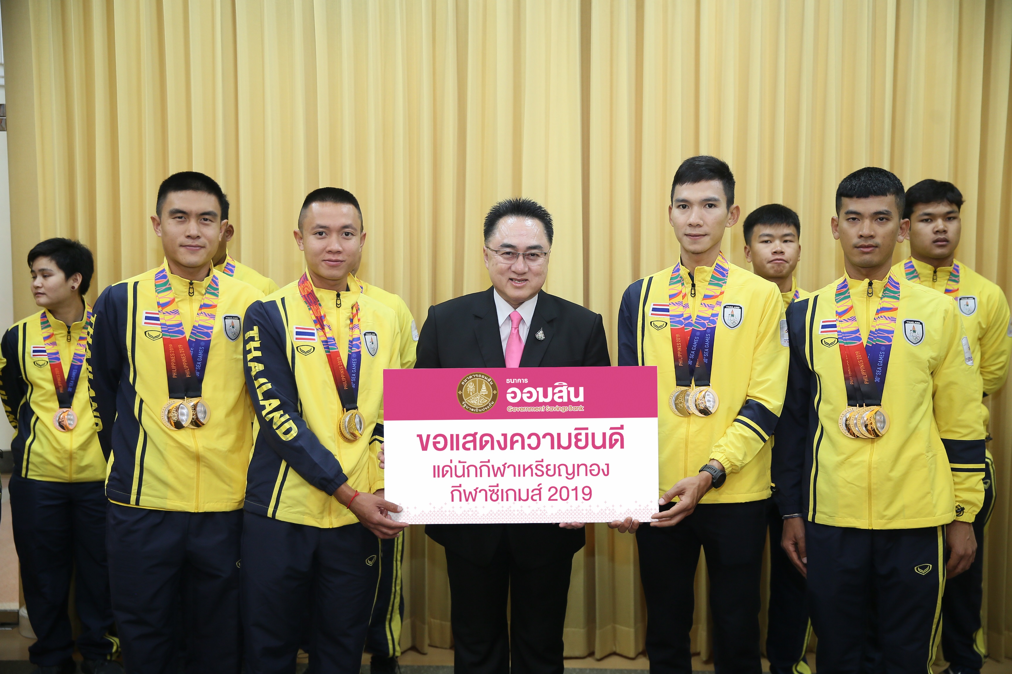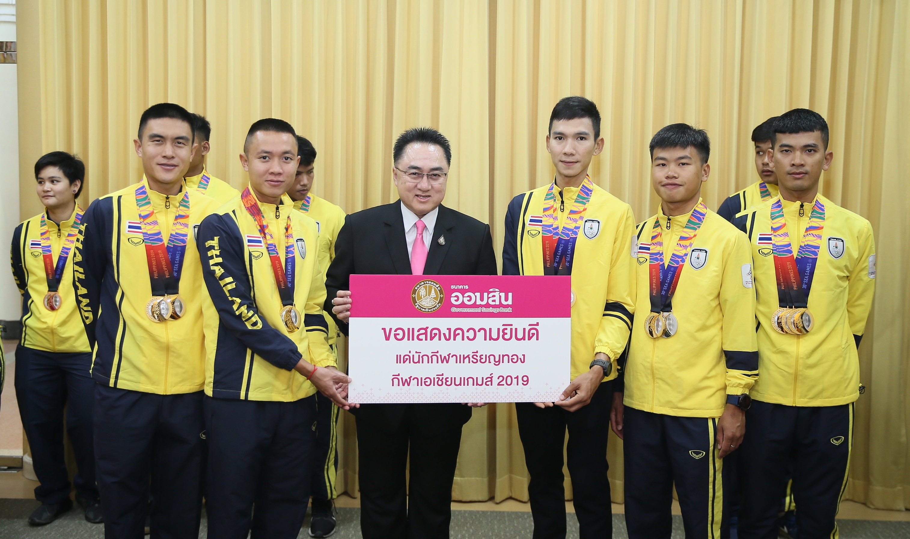 ในฐานะที่ธนาคารออมสินเป็นผู้ให้การสนับสนุนการดำเนินงานแก่สมาคมกีฬาจักรยานแห่งประเทศไทยมาอย่างต่อเนื่อง จนคว้าเหรียญรางวัลเป็นเจ้าซีเกมส์ประเภทกีฬาจักรยาน โดยได้รับรางวัล 6 เหรียญทอง 1 เหรียญเงิน 4 เหรียญทองแดง ถือเป็นการยกระดับฝีมือนักกีฬาจักรยานไทยในเวทีระดับสากล สร้างชื่อเสียงให้กับประเทศไทยเกินความคาดหมาย ในโอกาสนี้ธนาคารออมสินได้มอบสลากออมสินพิเศษ และบัตรออมสิน เดบิต วีซ่า สมาร์ทแคร์ เพื่อแสดงความยินดีและเป็นกำลังในการแข่งขันครั้งต่อๆไป ณ ธนาคารออมสิน สำนักงานใหญ่ เมื่อเร็วๆ นี้ ![]()