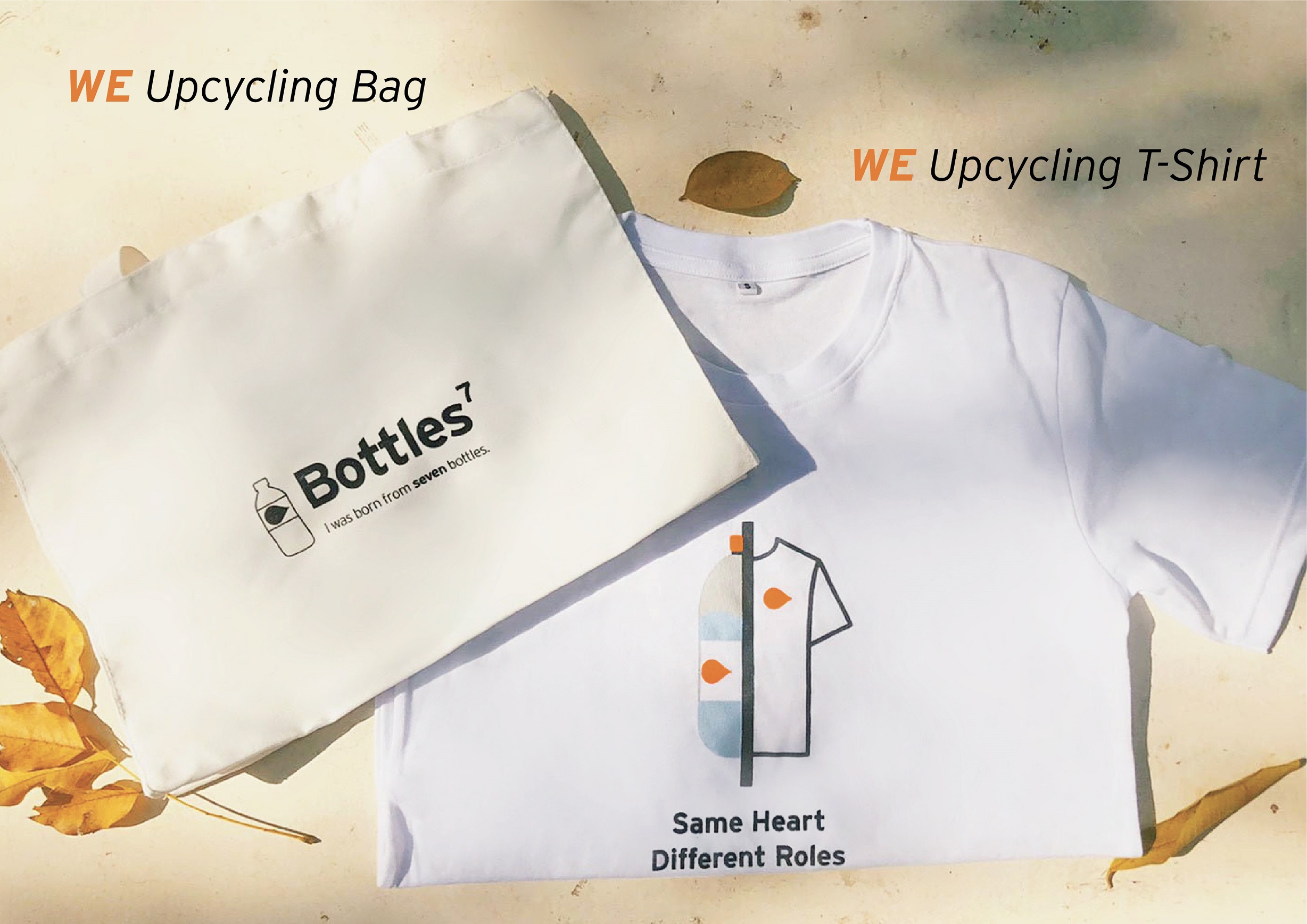 เสื้อยืด Upcycling ผลิตจากเส้นใยที่มาจากพลาสติก PET ใช้แล้ว 35% ผสม Cotton 65% เที่ยบเท่าการใช้ขวด PET จำนวน 4 ขวด ในการผลิตเสื้อยืด 1 ตัว จำหน่ายราคาตัวละ 250 บาท และกระเป๋า Upcycling ผลิตจากเส้นใยที่มาจากพลาสติก PET ใช้แล้ว100 % เทียบเท่าการใช้ขวด PET จำนวน 7 ขวด ในการผลิตกระเป๋า Upcycling 1 ใบ จำหน่ายราคาใบละ 150 บาท (สินค้าผลิตจำนวนจำกัด)