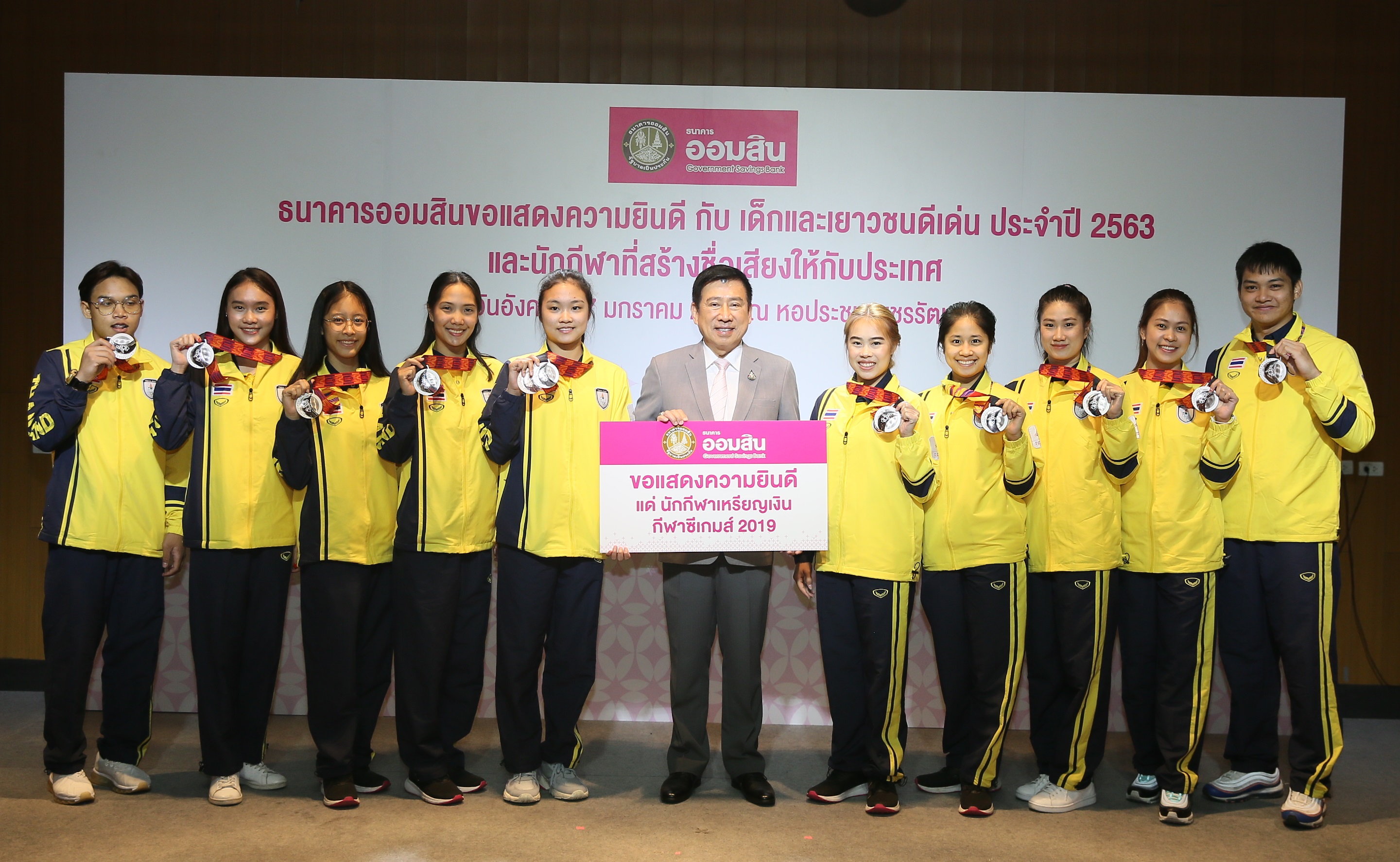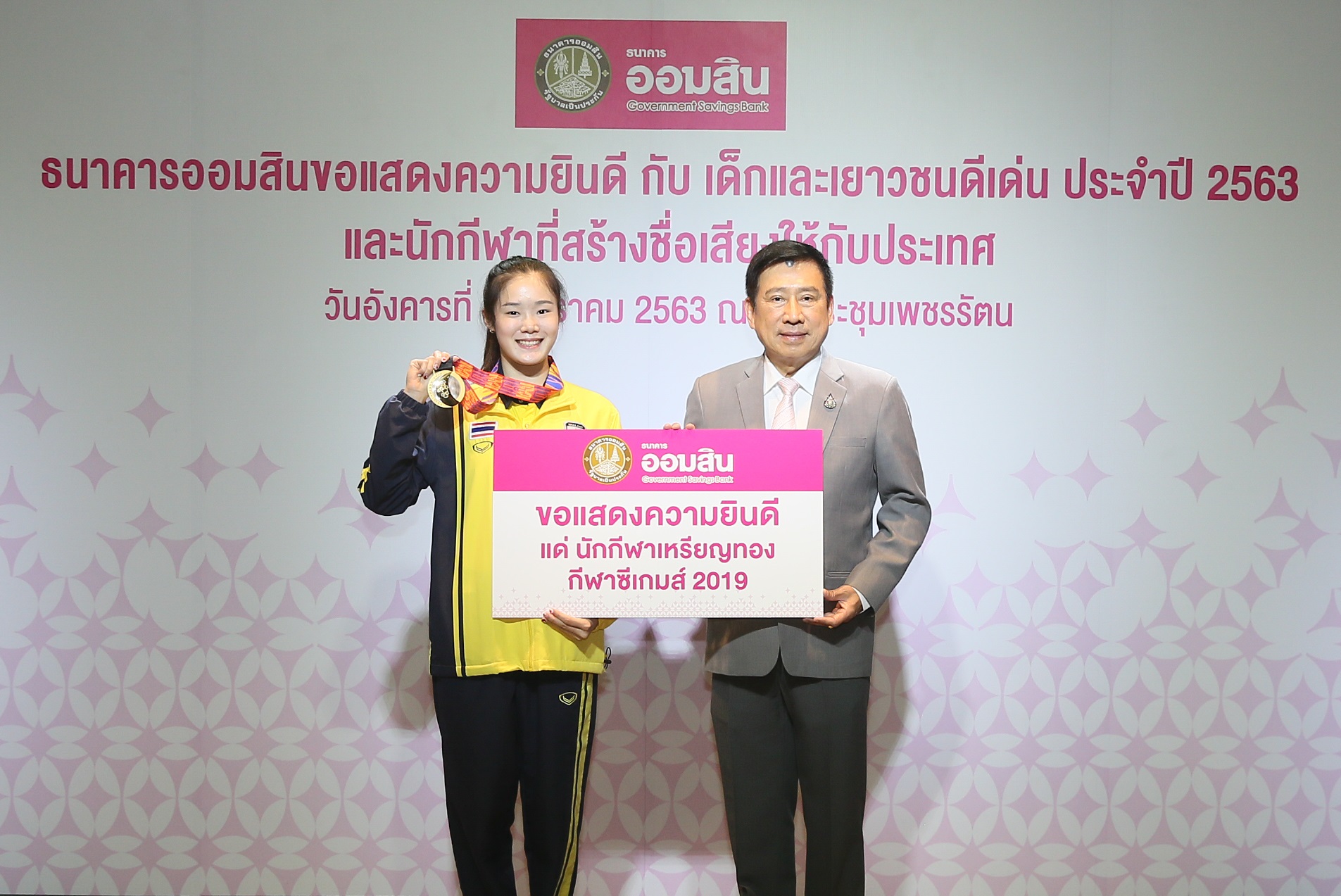 ทั้งนี้ธนาคารได้มอบสลากออมสินพิเศษ เพื่อแสดงความยินดีและเป็นกำลังใจให้กับนักกีฬาทุกคนประสบความสำเร็จในการแข่งขันกีฬาในระดับที่สูงขึ้นต่อไป ณ หอประชุมเพชรรัตน ธนาคารออมสิน สำนักงานใหญ่ เมื่อเร็วๆ นี้ ![]()