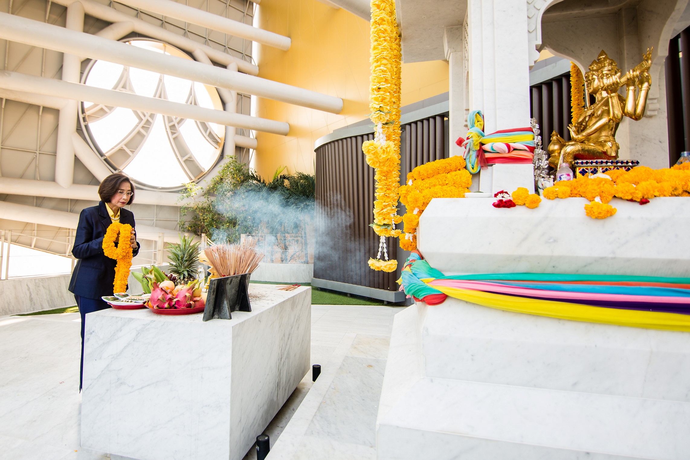 กรุงเทพฯ, 10 มกราคม 2563 : นางกฤติยา ศรีสนิท ประธานคณะเจ้าหน้าที่ด้านธุรกิจสินเชื่อยานยนต์ ธนาคารกรุงศรีอยุธยา จำกัด (มหาชน) นำพวงมาลัยและเครื่องไหว้สักการะศาลพระพรหม ณ อาคารกรุงศรี เพลินจิต ทาวเวอร์ ในโอกาสก้าวเข้าสู่ศักราชใหม่ พร้อมกับการขึ้นรับตำแหน่งใหม่ในฐานะผู้นำกรุงศรี ออโต้ งานนี้ถือฤกษ์มงคลช่วงเช้าในเวลา 9 นาฬิกา 9 นาที รับรองว่าปีนี้ ผู้นำหญิงคนใหม่ไม่มีหวั่น เตรียมนำทัพพากรุงศรี ออโต้ ก้าวไปข้างหน้า เข้าสู่ศักราชใหม่อย่างมั่นคง ![]()