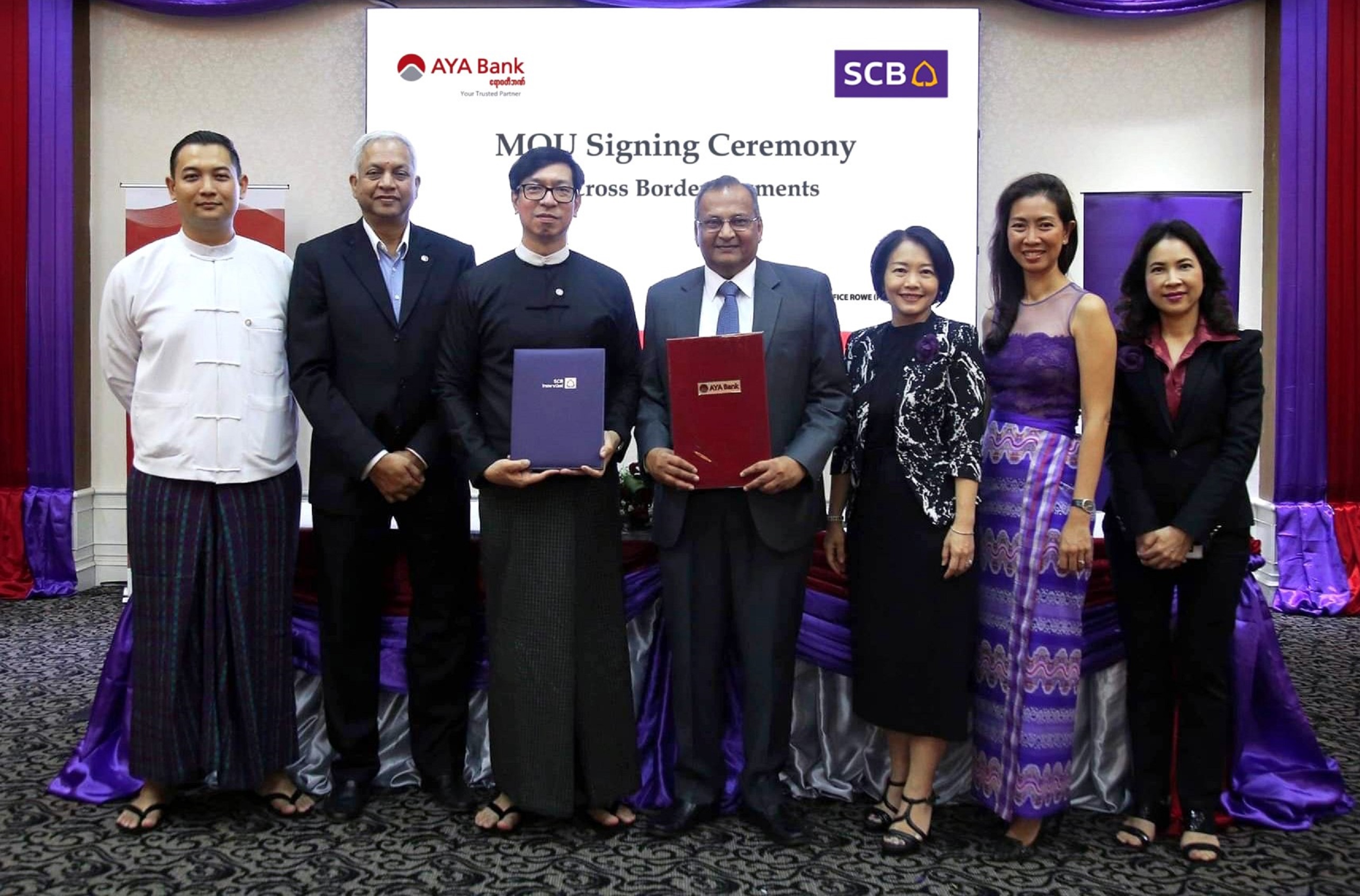 15 มกราคม 2563 : ธนาคารไทยพาณิชย์ รุกธุรกิจเมียนมาต่อเนื่อง จับมือธนาคารเอยาวดี (Ayeyarwady Bank หรือ AYA Bank) ธนาคารที่มีขนาดสินทรัพย์อันดับ 2 ของเมียนมา ลงนามบันทึกข้อตกลงความร่วมมือในการพัฒนาบริการชำระเงินข้ามพรมแดนและการโอนเงินระหว่างประเทศ (Cross Border Payments and Fund Transfer) เพื่ออำนวยความสะดวกและเพิ่มความคล่องตัวในการทำธุรกรรมทางการเงินระหว่างประเทศไทยและเมียนมาสำหรับผู้ประกอบการเอสเอ็มอีและลูกค้ารายย่อย กรอบความร่วมมือดังกล่าวยังรวมถึงการศึกษาทดลองแลกเปลี่ยนเงินระหว่างสกุลเงินบาทและสกุลจ๊าดโดยตรง ระหว่างธนาคารทั้งสอง
