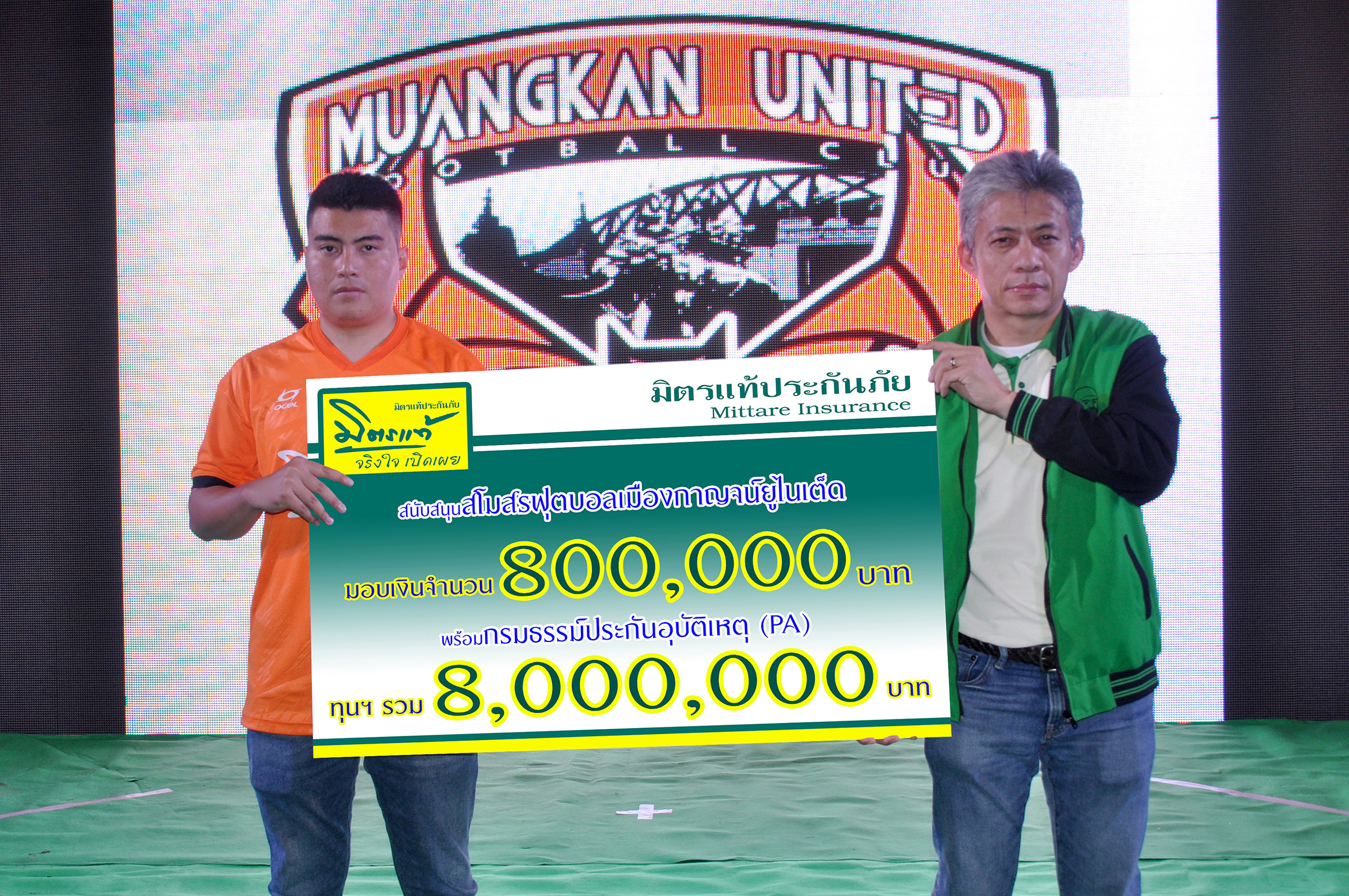 15 มกราคม 2563 : วิจักษณ์ ปาสาทิกะ รองกรรมการผู้จัดการ บริษัท มิตรแท้ประกันภัย จำกัด (มหาชน) เป็นผู้แทนองค์กรลงนามในบันทึกข้อตกลง (MOU) ร่วมกับ อภิวัฒน์ คณากรณ์ ประธานบอร์ดบริหารสโมสรฟุตบอลทีมเมืองกาญจน์ยูไนเต็ด 2020 ในฐานะองค์กรผู้สนับสนุนหลักอย่างเป็นทางการ พร้อมมอบเงินบำรุงสโมสรฯ จำนวน 800,000 บาท (แปดแสนบาท) และกรมธรรม์ประกันอุบัติเหตุสำหรับคณะผู้บริหารทีมและนักกีฬาทุกคนทุนประกันภัยรวม 8,000,000 บาท (แปดล้านบาท)