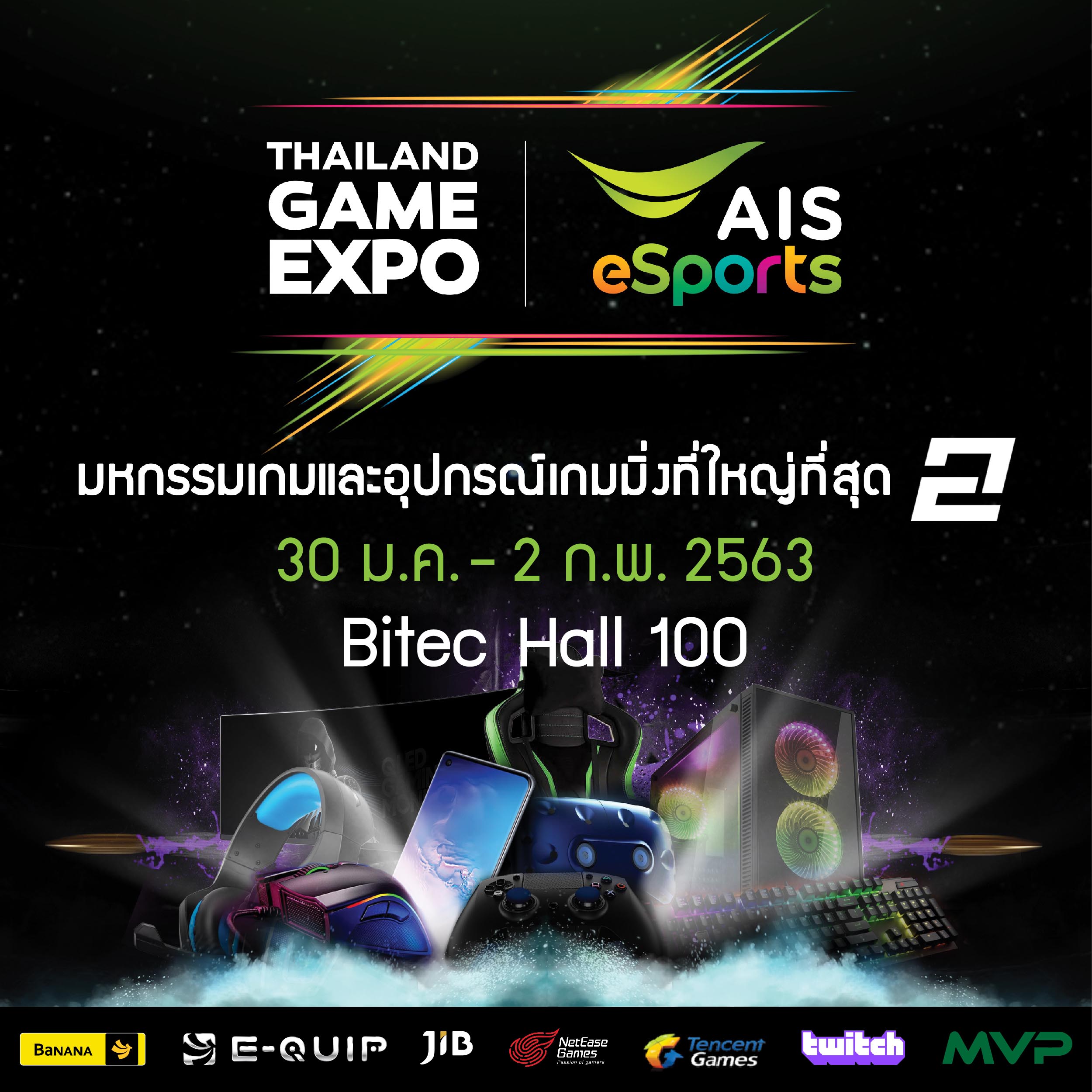 สาวกอีสปอร์ตและคอเกมเมอร์ รวมถึงประชาชนผู้สนใจเตรียมพบกับงาน Thailand Game Expo by AIS eSports ครั้งที่ 2 ในวันที่ 30 มกราคม – 2 กุมภาพันธ์ 2563 ตั้งแต่เวลา 10.00-20.00 น. ณ ฮอลล์ 100 ไบเทค บางนา ดูรายละเอียดกิจกรรม โปรโมชั่น และข้อมูลเพิ่มเติมที่ www.thailandgameexpo.com