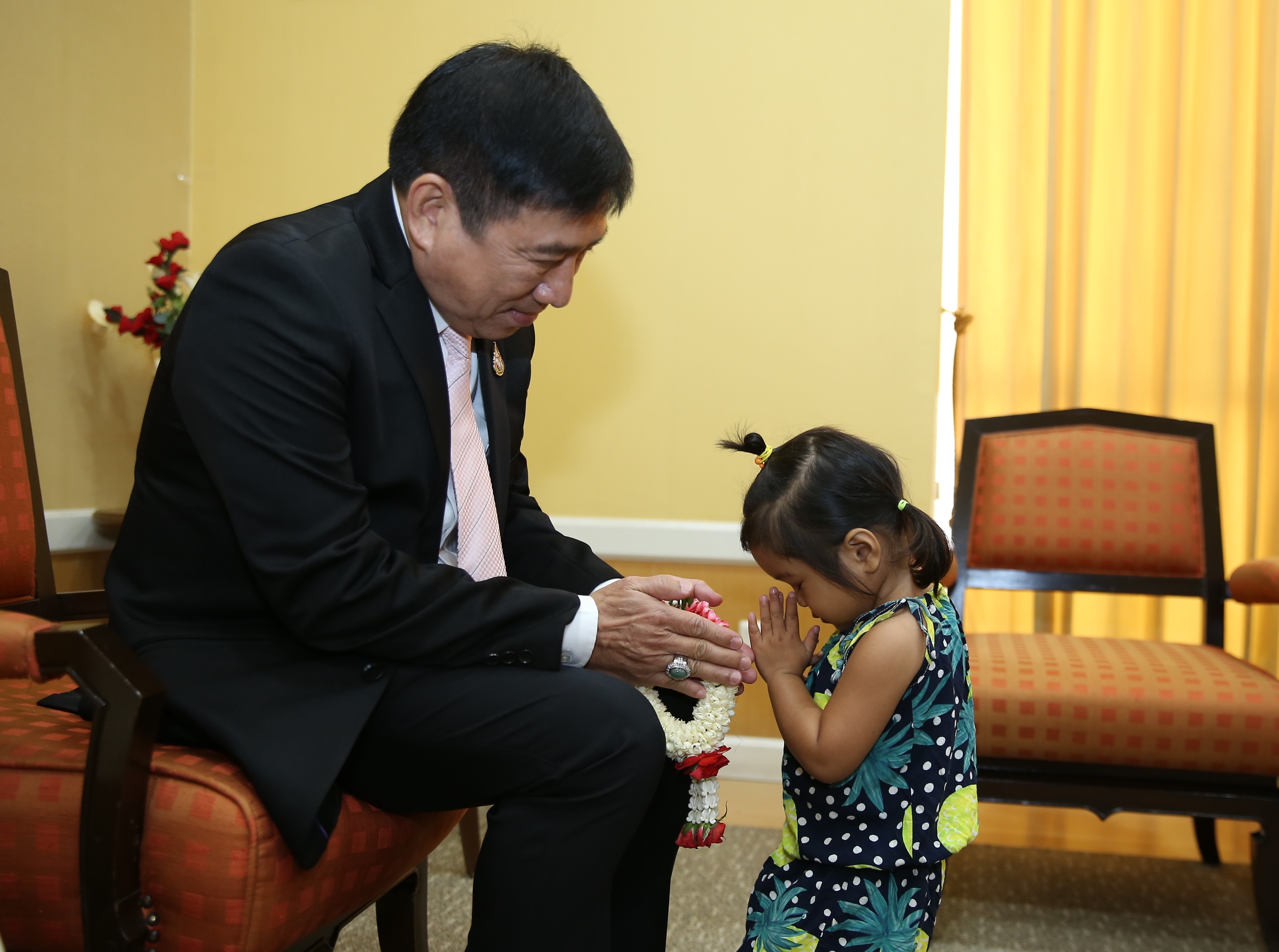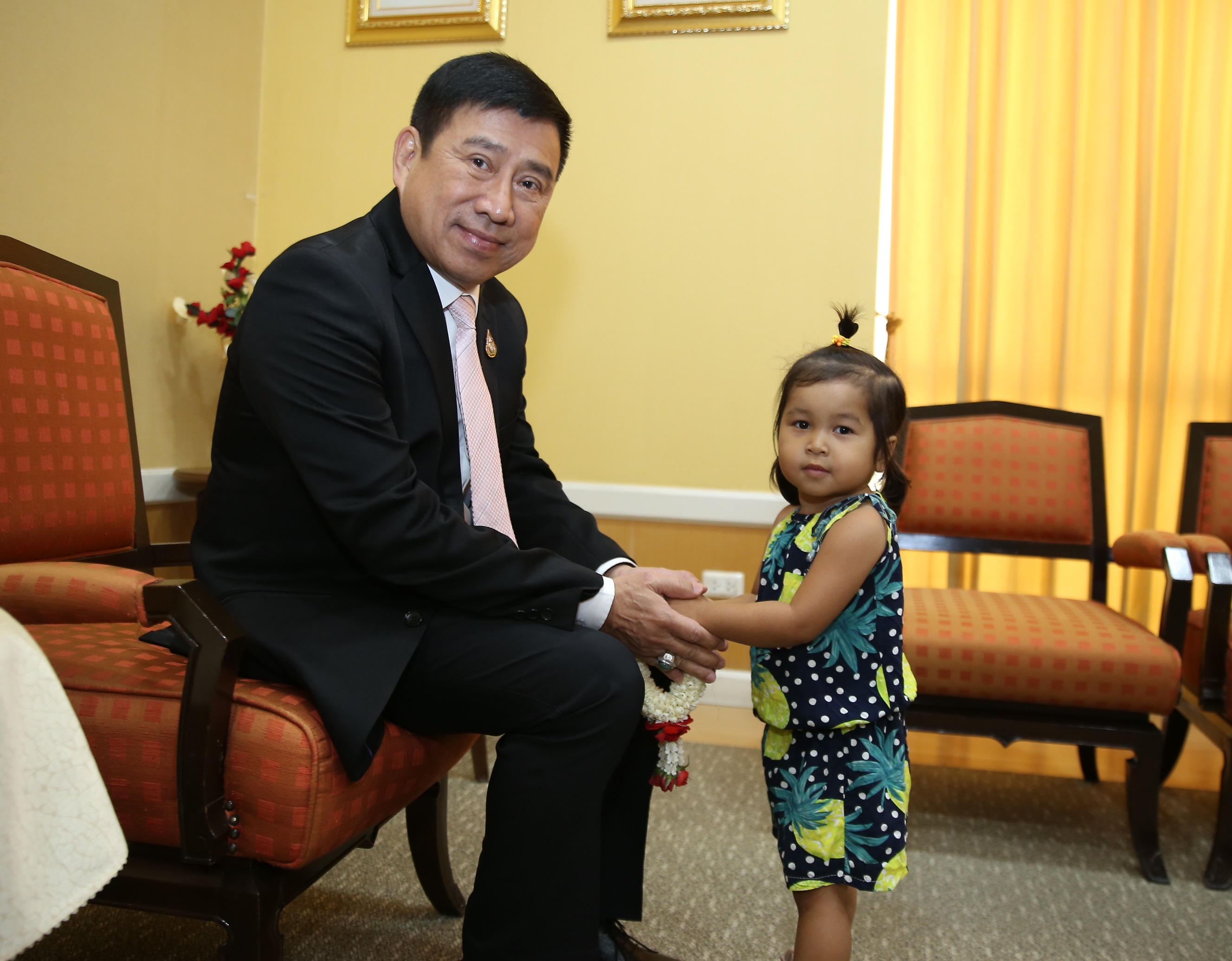 30 มกราคม 2563 : ดร.ชาติชาย พยุหนาวีชัย ผู้อำนวยการธนาคารออมสิน รับมอบพวงมาลัยแสดงความขอบคุณ จาก เด็กหญิง ขวัญยี่หวา นาลุน (น้องเนส) ตัวแทนเด็กโรคหัวใจตั้งแต่กำเนิด ในโอกาสเข้าพบและแสดงความขอบคุณที่ธนาคารออมสินให้ความช่วยเหลือค่ารักษาพยาบาลจนหายเป็นปกติ มีชีวิตใหม่ที่สดใสสุขภาพแข็งแรง ณ ธนาคารออมสิน สำนักงานใหญ่ เมื่อวันที่ 30 มกราคม 2563