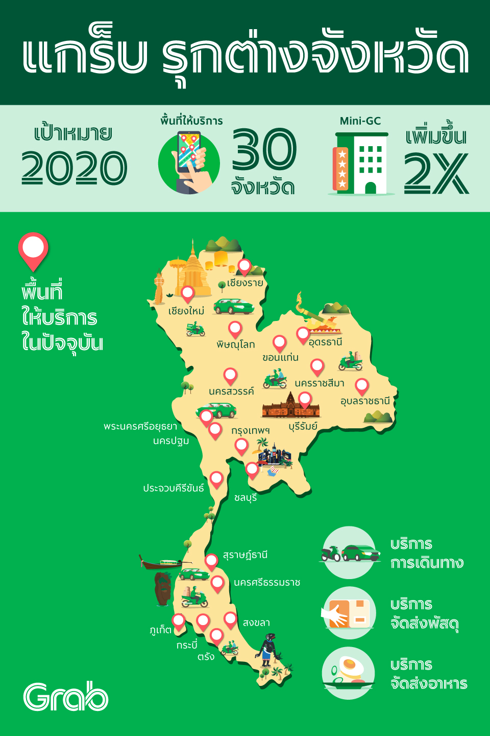 30 มกราคม 2563 : แกร็บ ผู้นำซูเปอร์แอปในภูมิภาคตะวันออกเฉียงใต้ ประกาศเดินหน้ารุกสร้างการเติบโตทางธุรกิจในประเทศไทยอย่างยั่งยืน พร้อมขยายการให้บริการในต่างจังหวัดเต็มรูปแบบผ่านโมเดล “Mini-GC” หรือ ศูนย์อบรมสาขาย่อย เล็งดันผู้ประกอบการรายย่อยร่วมเป็นเจ้าของธุรกิจช่วยขยายฐานผู้ใช้บริการ พร้อมรับสมัคร ดูแลและยกระดับมาตรฐานการให้บริการของพาร์ทเนอร์คนขับ–จัดส่งอาหาร รวมถึงพาร์ทเนอร์ร้านอาหาร เพื่อรองรับแผนการเติบโตไปสู่ 30 จังหวัดทั่วไทยภายในปี 2563
