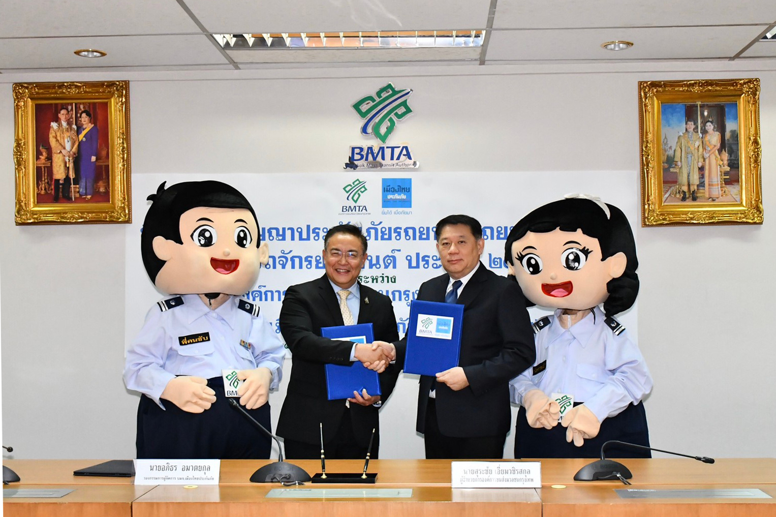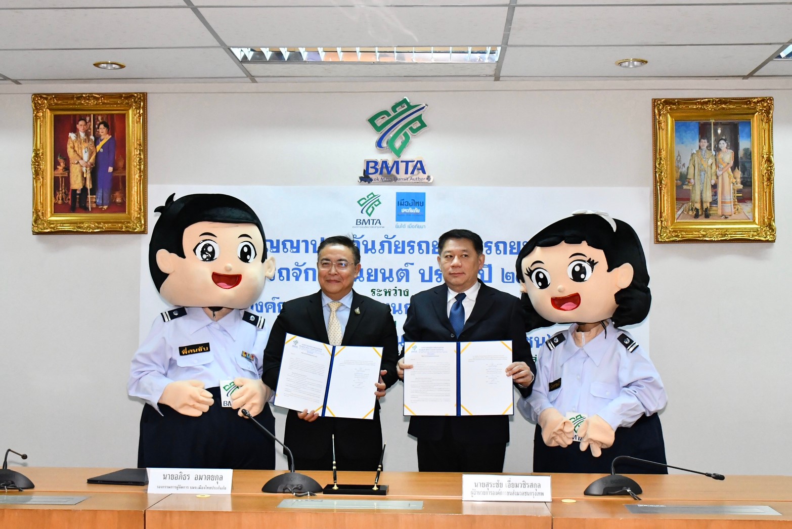 31 มกราคม 2563 : อภิธร อมาตยกุล รองกรรมการผู้จัดการ ตัวแทน บริษัท เมืองไทยประกันภัย จำกัด (มหาชน) หรือ MTI ร่วมกับ องค์การขนส่งมวลชนกรุงเทพฯ (ขสมก.) สุระชัย เอี่ยมวชิรสกุล ผู้อำนวยการองค์การขนส่งมวลชนกรุงเทพฯ จัดงาน “พิธีลงนามสัญญาประกันภัยรถยนต์ รถยนต์โดยสาร และรถจักรยานยนต์ ประจำปี 2563” โดยเมืองไทยประกันภัยรับประกันภัยรถยนต์ประเภท 3 และ พ.ร.บ.