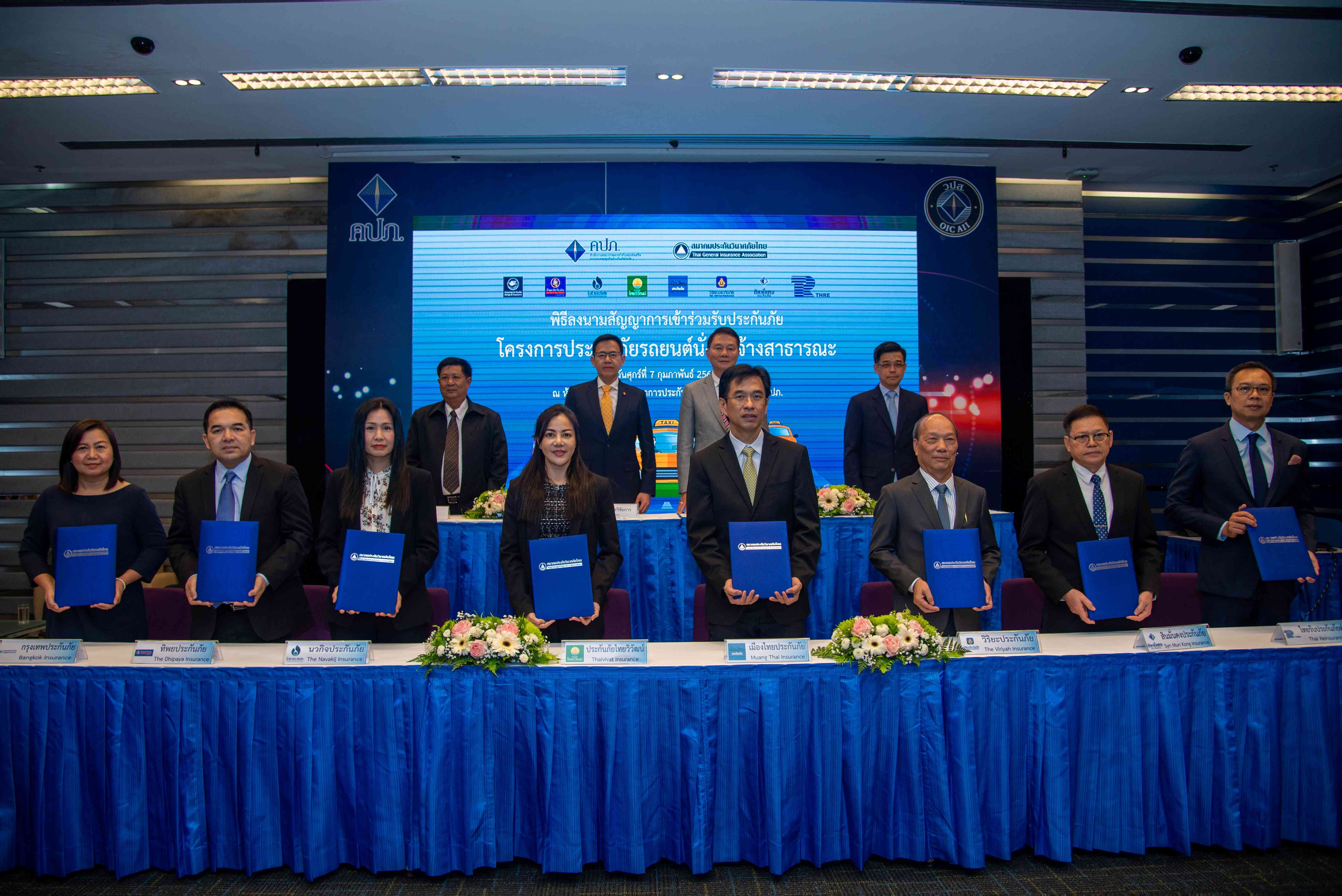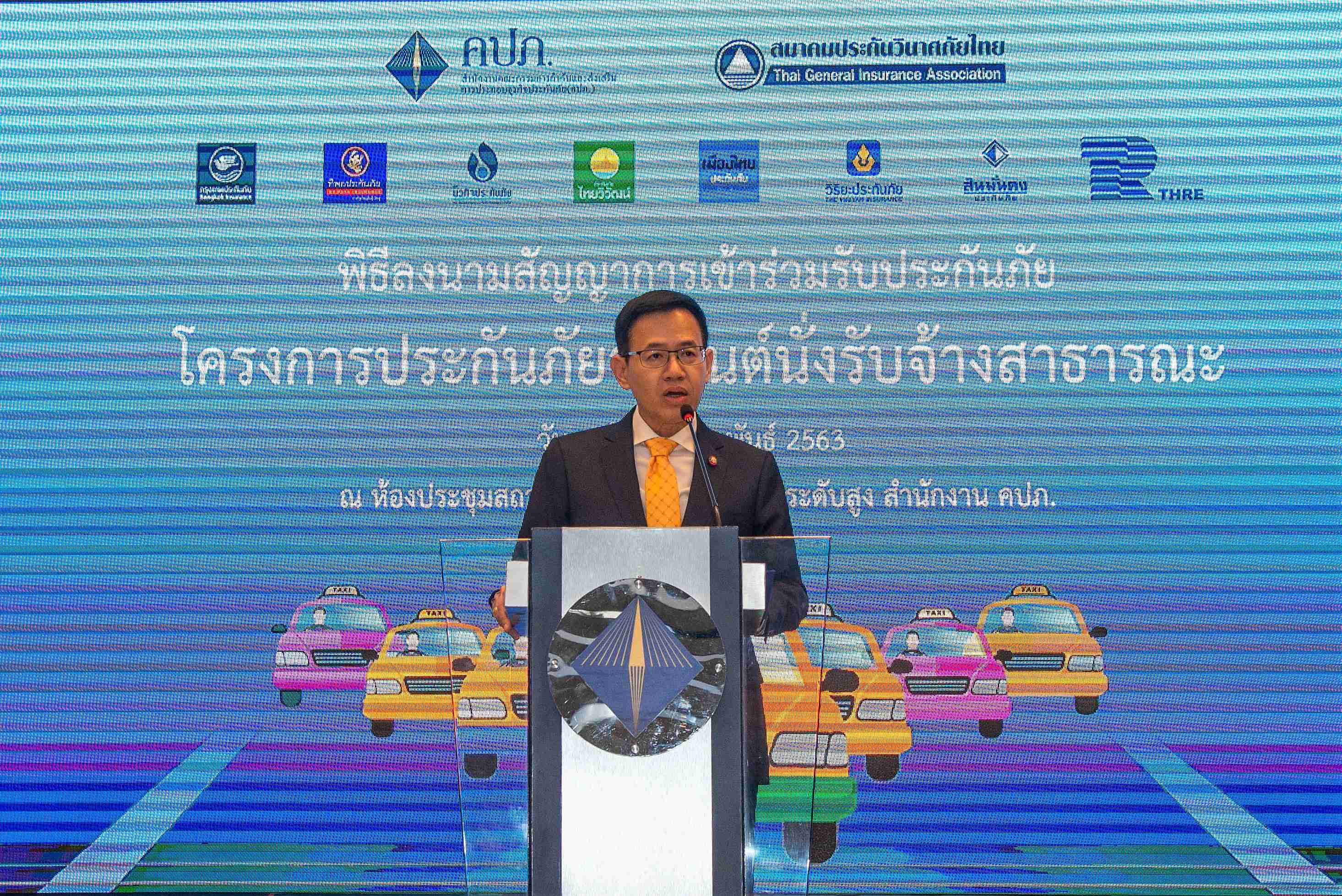 10 กุมภาพันธ์ 2563 : อานนท์ วังวสุ นายกสมาคมประกันวินาศภัยไทย นำ 8 บริษัทผู้รับประกันภัยรถยนต์นั่งรับจ้างสาธารณะ (รถแท็กซี่) ร่วมลงนามใน “สัญญาการเข้าร่วมรับประกันภัย โครงการประกันภัยรถยนต์นั่งรับจ้างสาธารณะ (รถแท็กซี่)” เพื่อจัดตั้งกองกลาง (Pool) สำหรับการประกันภัยรถแท็กซี่ โดยใช้กรมธรรม์ประกันภัยรถยนต์ภาคสมัครใจ ประเภท 3 กำหนดอัตราเบี้ยประกันภัยราคาเดียว 12,500 บาทต่อคัน เพื่อบรรเทาความเดือดร้อนให้กับผู้ประกอบการรถแท็กซี่ และสร้างความมั่นใจให้กับผู้ใช้บริการ โดยมี ดร. สุทธิพล ทวีชัยการ เลขาธิการ คปภ. เป็นประธานในพิธี ณ สำนักงาน คปภ. ![]()