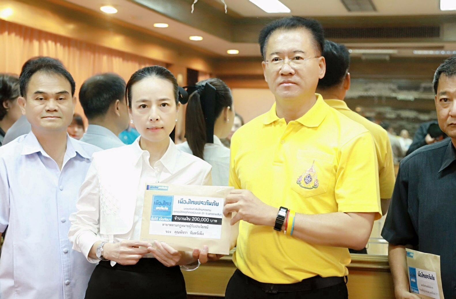 รวมถึง คุณพัชรา จันทร์เพ็ง ผู้ถือกรมธรรม์ประกันอุบัติเหตุส่วนบุคคล K-Max จำนวน 1 ฉบับ โดยบริษัทมอบเงินสินไหมให้แก่ทายาทตามกฎหมาย เป็นจำนวนเงิน 200,000 บาท โดยกรณีของคุณพัชรา ญาติได้นำศพกลับไปทำพิธีที่จังหวัดสกลนครแล้ว คุณวิเชียร จันทรโณทัย ผู้ว่าราชการจังหวัดนครราชสีมา, คุณอภิชาต วาที พัฒนาสังคมและความมั่นคงของมนุษย์จังหวัดนครราชสีมา และคณะแพทย์ของโรงพยาบาลในจังหวัดนครราชสีมา จึงให้เกียรติเป็นตัวแทนรับมอบเงินค่าสินไหมดังกล่าว