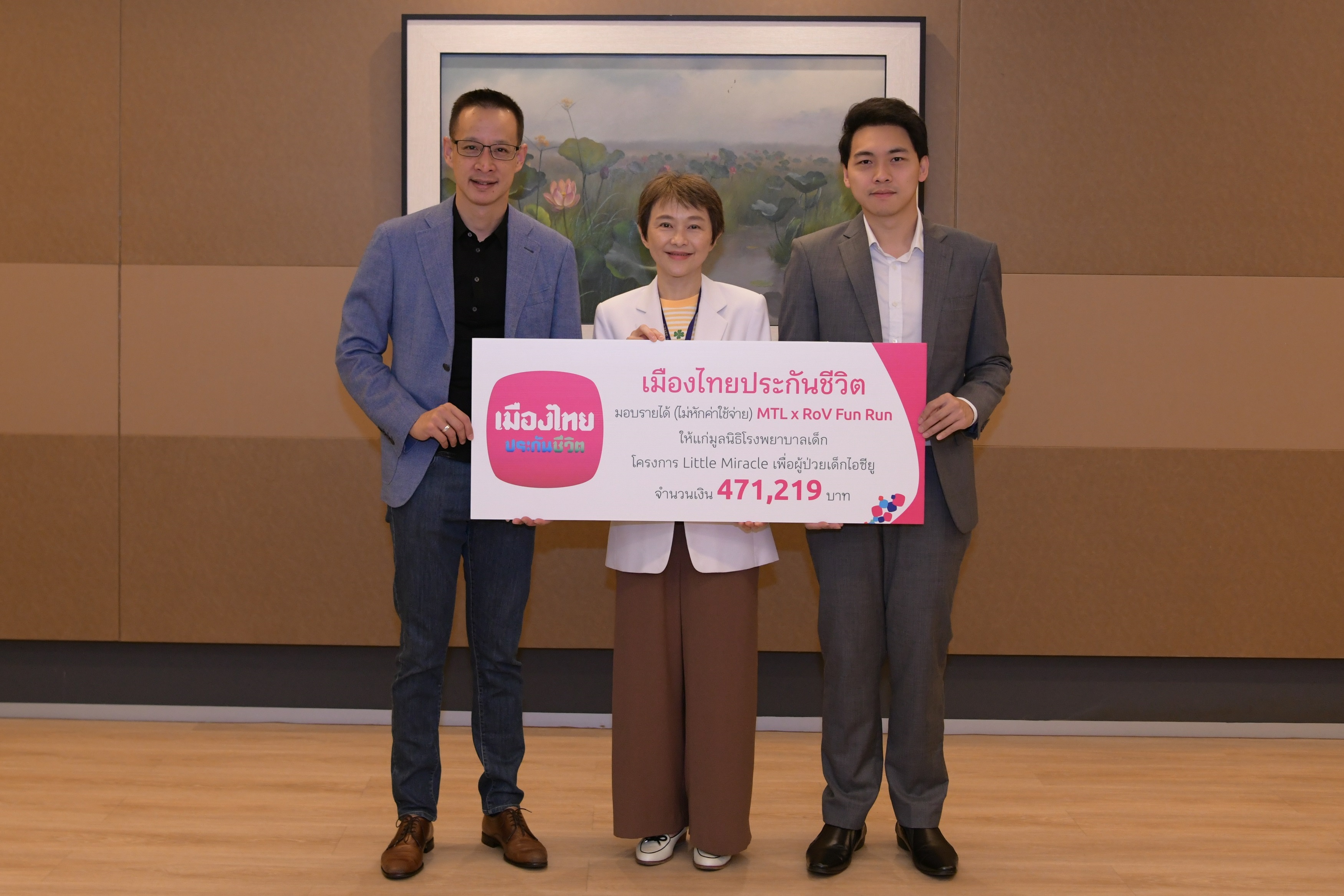 12 กุมภาพันธ์ 2563 : สาระ ล่ำซำ กรรมการผู้จัดการและประธานเจ้าหน้าที่บริหาร บริษัท เมืองไทยประกันชีวิต จำกัด (มหาชน) มอบรายได้จากการจัดกิจกรรม MTL x ROV Fun Run การแข่งขันวิ่งเพื่อการกุศล ที่ได้เปิดโอกาสให้ผู้ที่สนใจในกีฬาอีสปอร์ตและผู้รักสุขภาพได้ทำกิจกรรมวิ่งรูปแบบใหม่ และเป็นครั้งแรกในประเทศไทยกับเส้นทางการวิ่ง 5 กิโลเมตร (รายได้ทั้งหมดไม่หักค่าใช้จ่าย) ให้แก่ มูลนิธิโรงพยาบาลเด็ก โครงการ Little Miracle เพื่อผู้ป่วยเด็กไอซียู โดยได้รับเกียรติจาก ผ.ศ.พญ.พนิดา ศรีสันต์ หัวหน้างานหอผู้ป่วยเด็กวิกฤต สถาบันสุขภาพเด็กแห่งชาติมหาราชินี เป็นผู้แทนรับมอบ ซึ่งมีนายกฤตย์ พัฒนเตชะ Head of Garena Online (Thailand) Co., Ltd. ร่วมเป็นสักขีพยานในการมอบในครั้งนี้ ณ บริษัท เมืองไทยประกันชีวิต สำนักงานใหญ่ ![]()