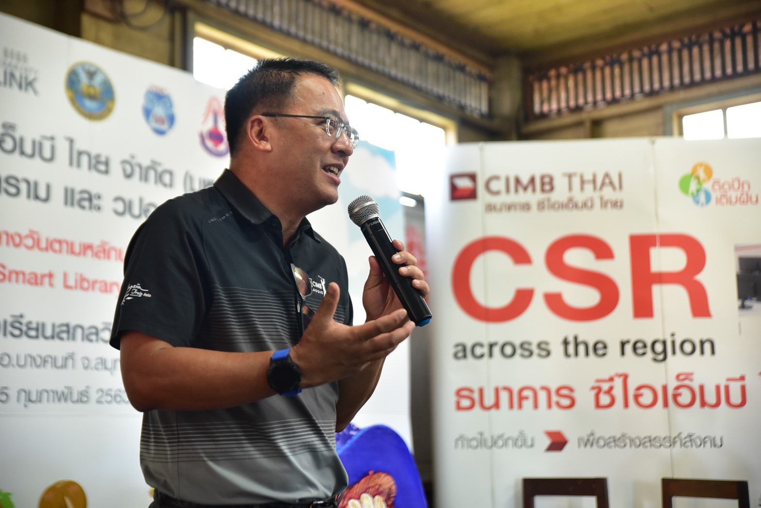 “แนวทางการทำ CSR ของธนาคารตั้งอยู่บนความยั่งยืน มากกว่าการให้ครั้งเดียวจบ และการศึกษาเป็นความยั่งยืนจึงเป็นที่มาที่ธนาคารให้ความสำคัญกับแกนนี้มาตลอด 10 ปี เราพบว่าโรงเรียนแต่ละแห่งต่างมีจุดแข็งที่พัฒนาให้เป็นจุดเด่นของโรงเรียนได้ ไม่ว่าจะเป็นพื้นที่ๆพัฒนาเป็นแปลงเกษตรได้ รวมถึงทักษะของเด็กๆ เรื่องการทำเกษตร ทักษะด้านดนตรี กีฬา หุ่นยนต์บังคับมือ เราจึงเข้าไปสนับสนุนส่งเสริมจุดเด่นนั้นๆ เพิ่มเติมจากการมอบศูนย์คอมพิวเตอร์ ปีนี้ธนาคารจะเดินหน้าโครงการติดปีกเติมฝันต่อไป เพราะเยาวชนคือรากฐานสำคัญของอนาคต สอดคล้องกับจุดยืนของโครงการเพื่อสังคมของธนาคาร ซีไอเอ็มบี ไทย ที่ไม่ใช่การให้เปล่า แต่เป็นการให้แบบยั่งยืน เป็นส่วนหนึ่งของเป้าหมาย Sustainable Banking” นายประภาส กล่าว ![]()