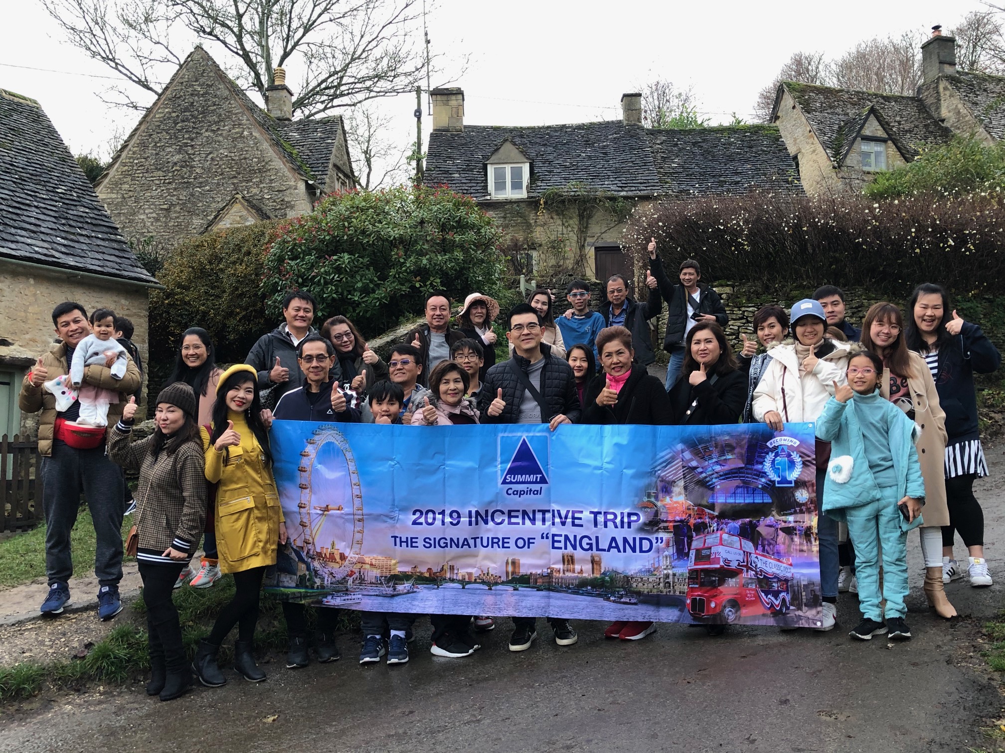 20 กุมภาพันธ์ 2563 : บริษัท ซัมมิท แคปปิตอล ลีสซิ่ง จำกัดผู้นำธุรกิจสินเชื่อเช่าซื้อรถจักรยานยนต์ในประเทศไทย นำทีมโดย นายพีรพงศ์ กี้ประสพสุข (กลาง) รองประธานเจ้าหน้าที่บริหาร สายงานบริหารงานขายและการตลาดยกขบวนดีลเลอร์พร้อมพนักงานกว่า 46 ท่าน ท่องเที่ยวชมหมู่บ้านที่สวยที่สุดในประเทศอังกฤษ พร้อมดื่มด่ำบรรยากาศที่สวยงามรายล้อมด้วยดอกไม้ และหมู่บ้านที่มีเอกลักษณ์เป็นกระท่อมโบราณ พร้อมสายน้ำที่ไหลผ่าน ฉลองยอดขายทะลุเป้า พร้อมมอบขวัญกำลังใจในความมุ่งมั่นและตั้งใจของเหล่าพันธมิตรคู่ค้า ณ หมู่บ้านไบบิวรี่ แห่งคอดส์โวลส์ประเทศอังกฤษ เมื่อเร็ว ๆ นี้ ![]()