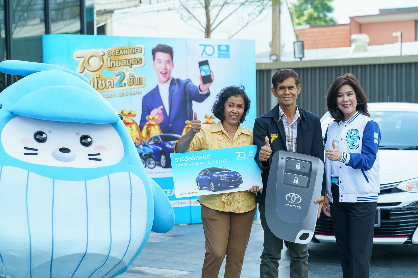 24 กุมภาพันธ์ 2563 : บมจ.ไทยสมุทรประกันชีวิต รักคือพลังของชีวิต โดย นุสรา (อัสสกุล) บัญญัติปิยพจน์ กรรมการผู้จัดการ พร้อมคณะผู้บริหาร ร่วมมอบรางวัลจากแคมเปญ “70 ปี OCEAN LIFE ไทยสมุทร ลุ้นโชค 2 ชั้น” ครั้งที่ 6 ซึ่งเป็นรางวัลใหญ่รถยนต์ TOYOTA YARIS ATIV มูลค่า 479,000 บาท จำนวน 1 รางวัล ให้แก่ วิรัตน์ หอมตา ผู้โชคดีจากสาขาเพชรบูรณ์ เพื่อมอบเป็นของขวัญตอบแทนความไว้วางใจของลูกค้าในโอกาสฉลองครบรอบ 70 ปี ในปี 2562 ที่ผ่านมา
