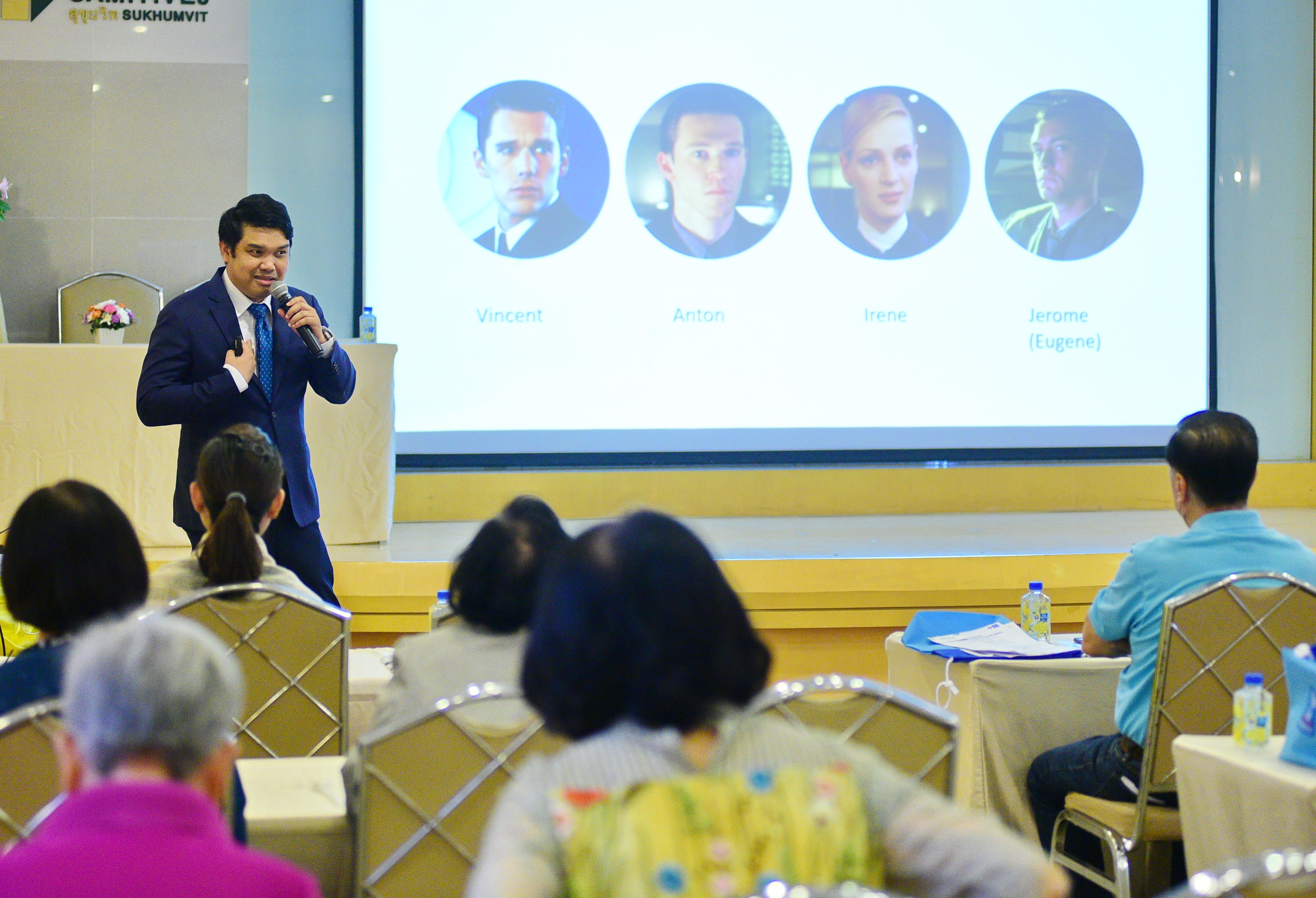 กิจกรรมครั้งนี้ นอกจากลูกค้าจะได้รับการตรวจสุขภาพขั้นพื้นฐานจากโรงพยาบาลสมิติเวชแล้ว ยังได้ฟังบรรยายหัวข้อ “พันธุกรรมกับชีวิต : บทสรุปจากภาพยนตร์ Gattaca” โดย ผศ.ดร.นายแพทย์ โอบจุฬ ตราชู เกี่ยวกับโรคและความบกพร่องทางพันธุกรรมที่สามารถถ่ายทอดจากพ่อ-แม่ สู่ลูก อันเป็นความเสี่ยงที่เกิดขึ้นได้