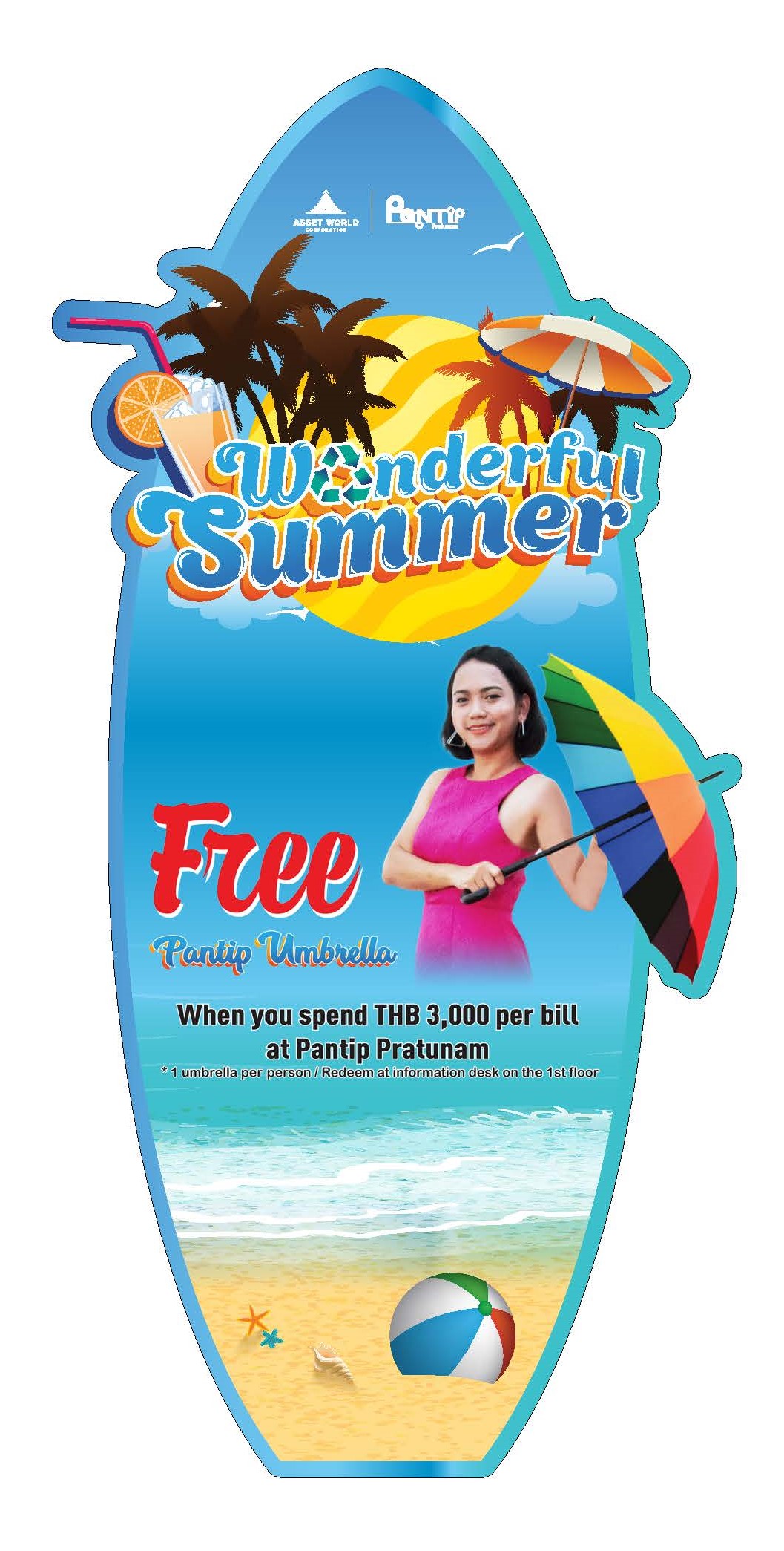 9 มีนาคม 2563 : ศูนย์การค้าพันธุ์ทิพย์ ประตูน้ำ ชวนมาช้อปท้าลมร้อนกับแคมเปญ ‘Wonderful Summer’ เมื่อซื้อสินค้าภายในศูนย์ฯ 3,000 บาทขึ้นไป รับฟรี! ร่ม Pantip Umbrella มูลค่า 590 บาท (1 คันต่อคนต่อวัน) สามารถนำใบเสร็จมารับร่มได้ที่จุดประชาสัมพันธ์ ชั้น 1 ศูนย์การค้าพันธุ์ทิพย์ ประตูน้ำ ![]()