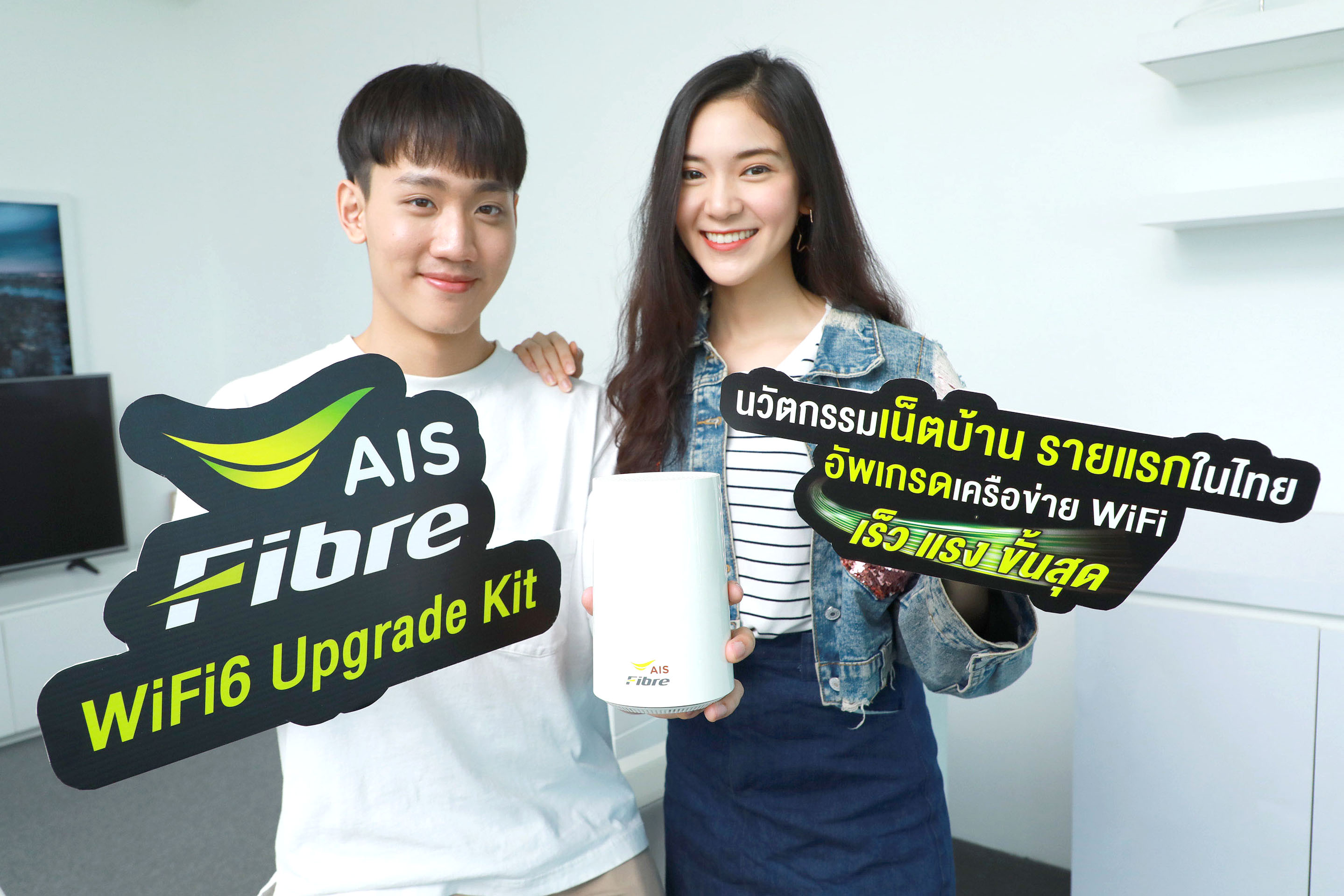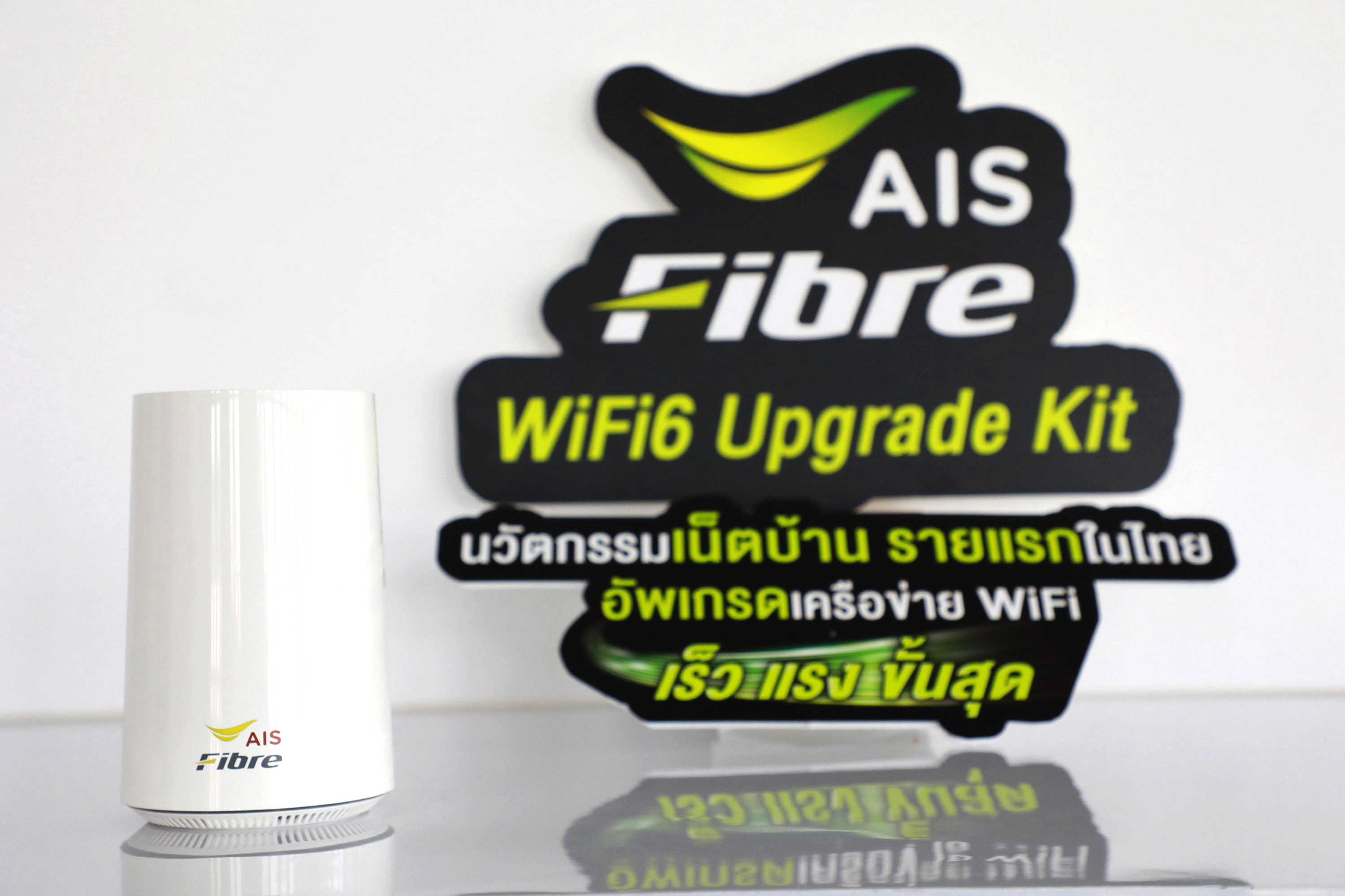 แต่ด้วยปัจจุบัน ยังไม่มีผู้ให้บริการบรอดแบนด์รายใด ที่มีอุปกรณ์รองรับเทคโนโลยี Wi-Fi 6 AIS Fibre จึงเป็นรายแรกและรายเดียวในตลาด ที่คิดค้นและพัฒนานวัตกรรมอุปกรณ์เสริมใหม่ “AIS Fibre WiFi6 Upgrade Kit” ให้สามารถรองรับเทคโนโลยี Wi-Fi 6 ตามมาตรฐาน IEEE 802.11 ax มาให้ลูกค้าได้สัมผัสก่อนใคร ช่วยเพิ่มขีดความสามารถของเราเตอร์ที่มีอยู่ ให้มีความเร็วสูงสุด 850 Mbps เมื่อใช้อุปกรณ์ที่รองรับ Wi-Fi 6 และสูงสุด 650 Mbps เมื่อใช้กับอุปกรณ์ที่ยังไม่รองรับ Wi-Fi 6 พร้อมกันนี้ ยังอัพความเร็วแพ็กเกจให้เป็น SpeedBOOST 1000/500 Mbps นาน 1 ปี โดยไม่ติดสัญญาอีกด้วย เพื่อมอบประสบการณ์เชื่อมต่อ WiFi ภายในบ้านในเร็ว แรง เสถียรยิ่งกว่าเดิม ตอบโจทย์คนที่ต้องการใช้เน็ตความเร็วสูง และใช้งานดีไวซ์ทั้งมือถือและอุปกรณ์อื่นๆ พร้อมกันได้หลายเครื่อง โดยลูกค้าที่สนใจสามารถซื้อผ่านทางออนไลน์ และติดตั้งเองได้ง่ายๆ พร้อมใช้งานได้ทันที”