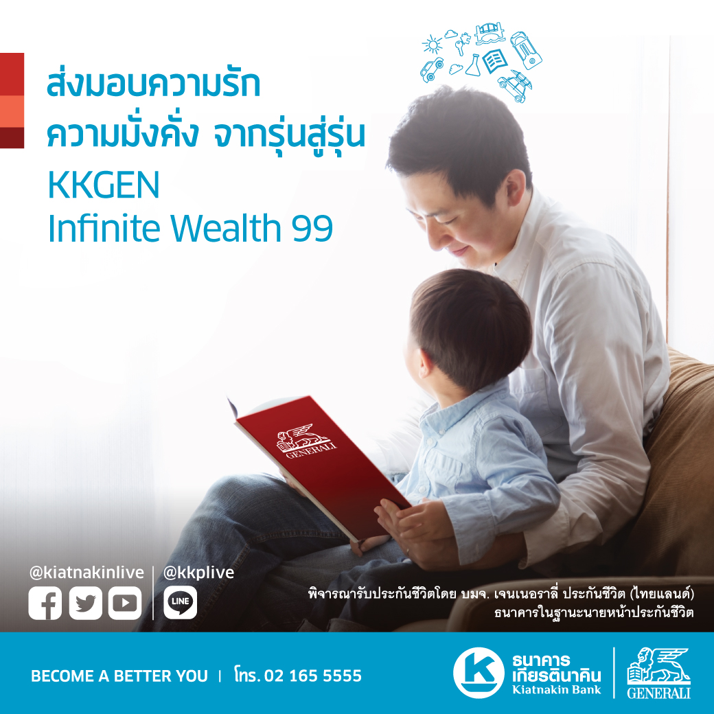 โดยออกแบบประกันชีวิต เคเคเจน อินฟินิท เวลท์ 99/2 (KKGEN Infinite Wealth 99/2) และ เคเคเจน อินฟินิท เวลท์ 99/10 (KKGEN Infinite Wealth 99/10) เสริมไลน์ผลิตภัณฑ์ประกันชีวิตแบบตลอดชีพ โดยมีอายุรับประกันภัยระหว่าง 16 ปี – 70 ปี จำนวนเงินเอาประกันภัยเริ่มต้น 500,000 บาท ส่วนด้านผลประโยชน์นั้น นอกจากความคุ้มครองชีวิต 100% ของจำนวนเงินเอาประกันภัยตลอดสัญญาแล้ว กรมธรรม์ยังให้ความคุ้มครองกรณีเสียชีวิตจากอุบัติเหตุเพิ่มอีก 100% ของจำนวนเงินเอาประกันภัยจนถึงอายุ 90 ปีอีกด้วย โดยลูกค้าไม่ต้องจ่ายเบี้ยเพิ่มแต่อย่างใด