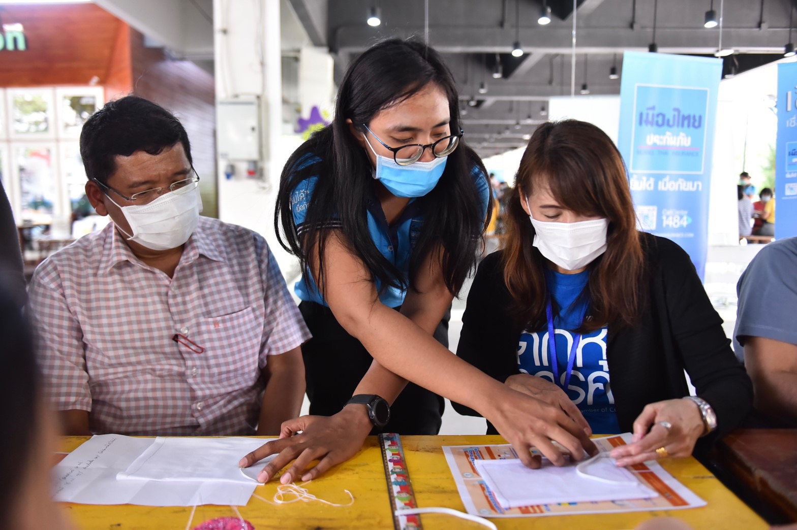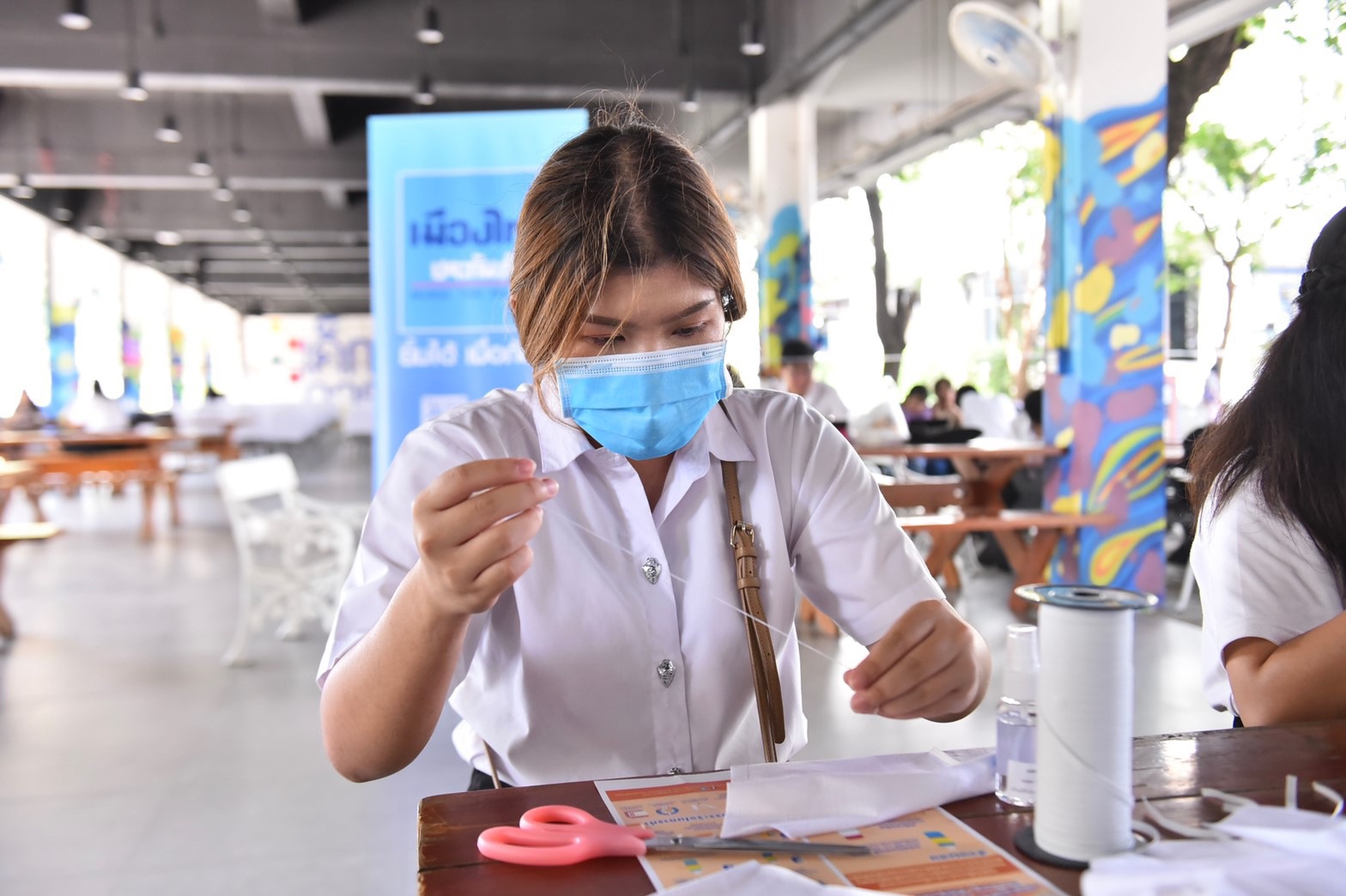 สถานการณ์การแพร่ระบาดของเชื้อไวรัสโควิด-19 ยังส่งผลกระทบอย่างต่อเนื่องในประเทศไทย ส่งผลให้อุปกรณ์ป้องกันและทำความสะอาดยังหายาก และมีราคาสูงขึ้นต่อเนื่อง งานนี้ นางนวลพรรณ ล่ำซำ CEO บมจ.เมืองไทยประกันภัย ซึ่งเป็นผู้ริเริ่มจัดตั้งกลุ่มอาสากล้าใหม่เมืองไทย เพื่อเป็นต้นแบบในการช่วยเหลือสังคมในช่วงวิกฤต โดยเริ่มต้นที่กิจกรรมอาสากล้าใหม่เมืองไทยสัญจร ไปสอนทำสเปรย์แอลกอฮอล์และหน้ากากผ้าแบบพึ่งพาตนเอง ให้แก่บุคลากรของ 2 องค์กรใหญ่ระดับประเทศ คือ คณะบัญชี มหาวิทยาลัยหอการค้าไทย และ สำนักงานปลัดสำนักนายกรัฐมนตรี ทำเนียบรัฐบาล โดยมีผู้ร่วมกิจกรรมทั้ง 2 แห่งกว่า 500 คน