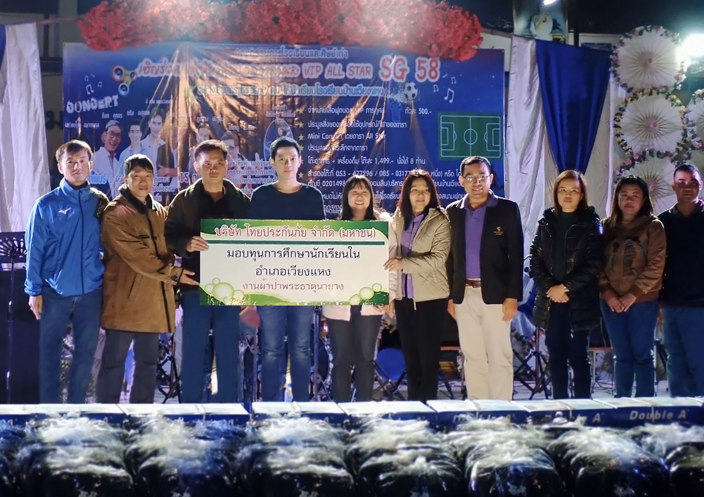 13 มีนาคม 2563 : ดร.มหัทธนะ อัมพรพิสิฏฐ์ กรรมการผู้จัดการ บริษัท ไทยประกันภัย จำกัด (มหาชน) พร้อมคณะผู้บริหารและพนักงาน TIC ไทยประกันภัย มอบทุนการศึกษาและอุปกรณ์การเรียนให้กับนักเรียนในอ.เวียงแหง จ.เชียงใหม่ พร้อมร่วมกิจกรรมเตะฟุตบอลกระชับมิตรกับเยาวชน สร้างความสนุกสนานและความประทับใจแก่คนในชุมชน