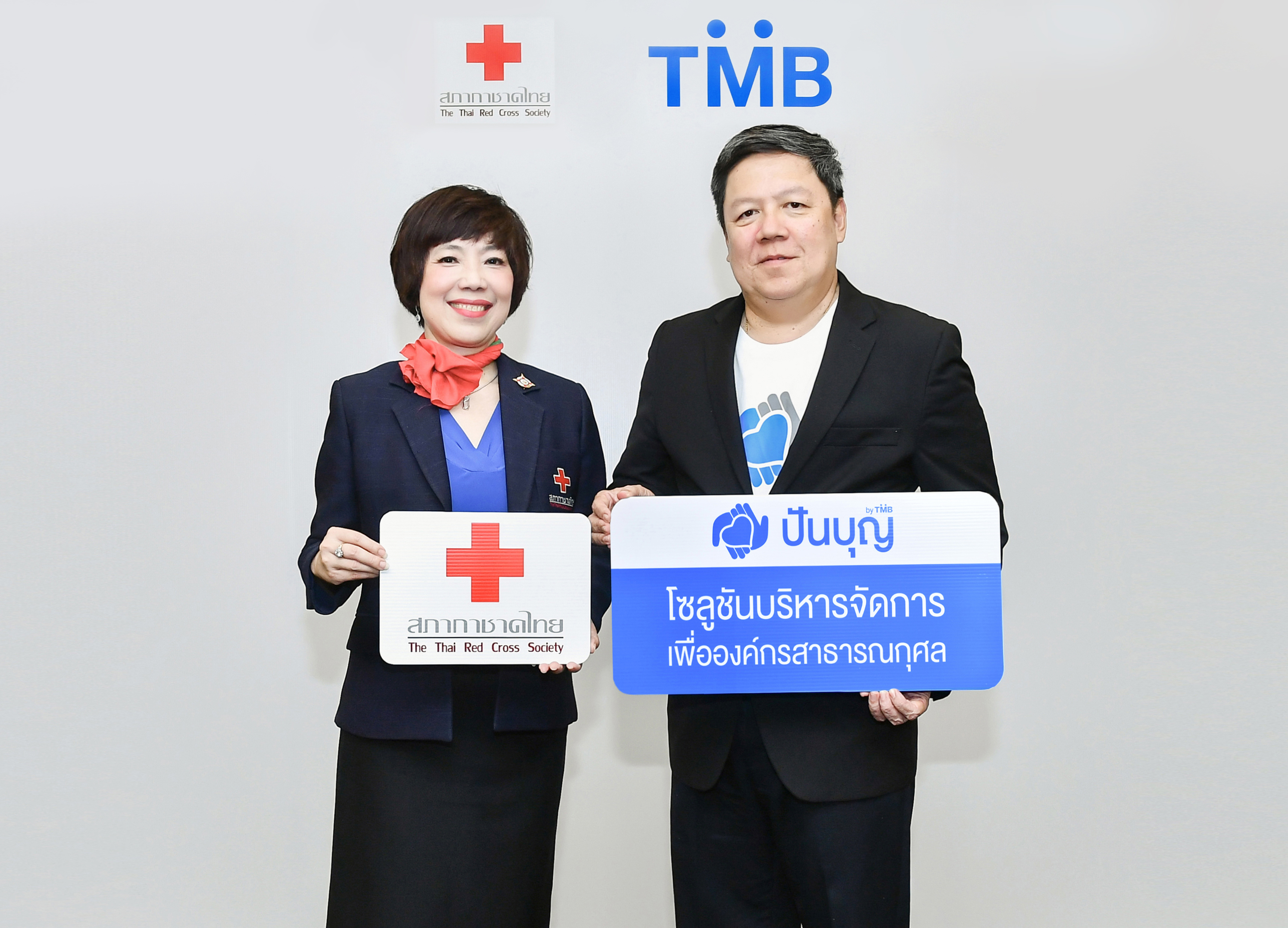 กรุงเทพฯ 13 มี.ค.2563 : วีระชัย อมรรัตน์ หัวหน้าเจ้าหน้าที่บริหาร บริหารความสัมพันธ์ลูกค้าธุรกิจทหาร องค์กรรัฐ และ องค์กรไม่แสวงหาผลกำไร ทีเอ็มบี (ขวา)และ จันทร์ประภา วิชิตชลชัย รองผู้อำนวยการฯ รักษาการในตำแหน่งผู้อำนวยการสำนักงานจัดหารายได้ สภากาชาดไทย (ซ้าย) ร่วมถ่ายภาพเป็นที่ระลึก การร่วมมือ เปิด “ปันบุญ หรือ www.punboon.org” เป็นช่องทางบริจาคออนไลน์ให้กับสภากาชาดไทย เพื่อนำเงินบริจาคไปจัดซื้อเครื่องมือแพทย์ และก่อสร้างอาคาร ศรีสวรินทิรานุสรณ์ 150 ปี โรงพยาบาลสมเด็จพระบรมราชเทวี ณ ศรีราชา ซึ่งจะรองรับการให้บริการผู้ป่วยได้มากกว่า 1 ล้านรายต่อปี