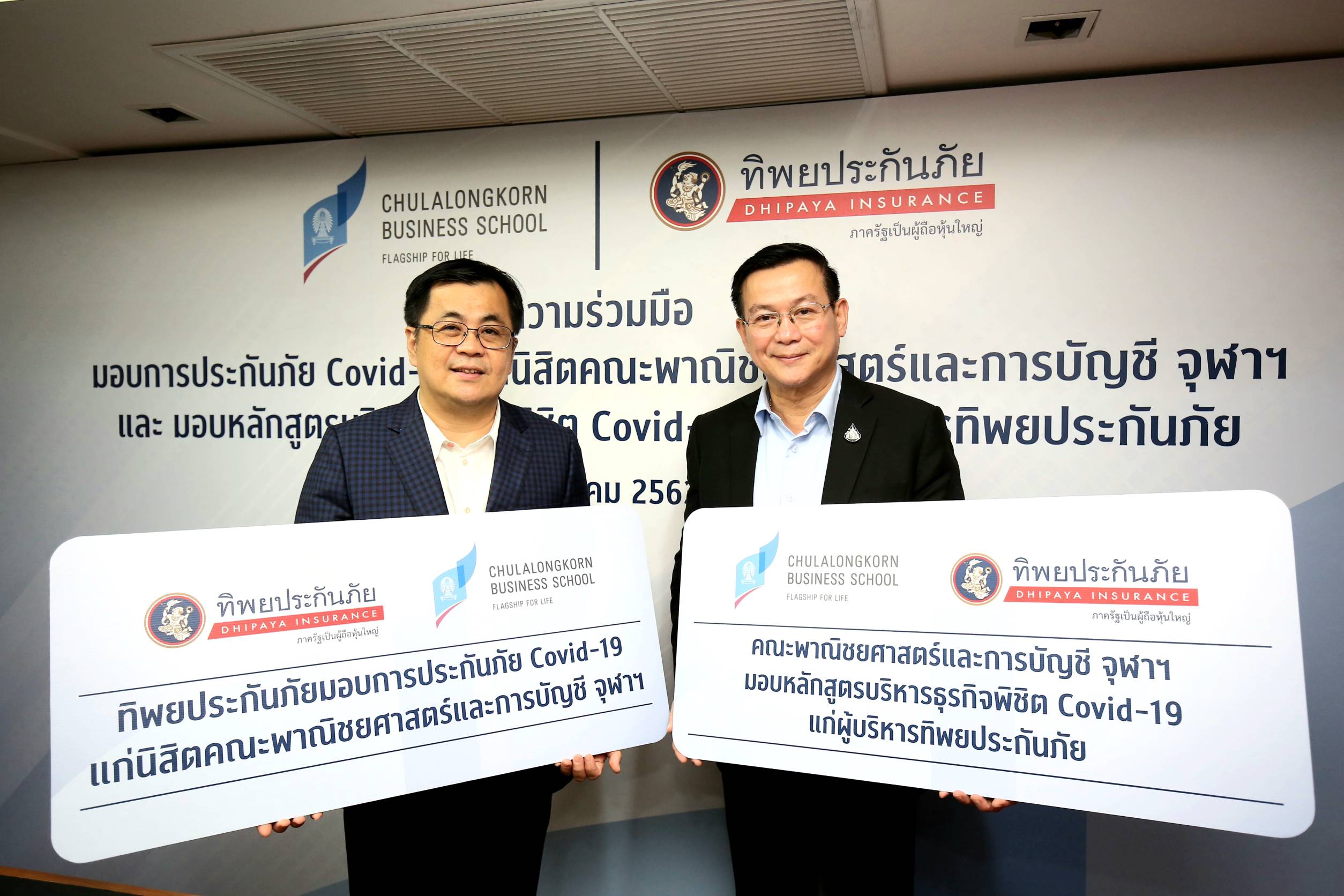13 มีนาคม 2563 : บริษัท ทิพยประกันภัย จำกัด (มหาชน) และ คณะพาณิชยศาสตร์และการบัญชี จุฬาลงกรณ์มหาวิทยาลัย ร่วมมือฝ่าวิกฤต COVID-19 โดยทิพยประกันภัยได้มอบกรมธรรม์คุ้มครองการติดเชื้อไวรัส COVID-19 ให้แก่นิสิตของคณะบัญชีฯ จุฬาฯ ทุกคน ทุกระดับชั้น และคณะบัญชีฯ จุฬาฯ ได้มอบหลักสูตรบริหารธุรกิจพิชิต COVID-19 ให้แก่ผู้บริหารทิพยประกันภัย โดยมี ดร.สมพร สืบถวิลกุล กรรมการผู้จัดการใหญ่ และ รศ.ดร. วิเลิศ ภูริวัชร คณบดี ร่วมแถลงความร่วมมือดังกล่าว ณ คณะบัญชีฯ จุฬาฯ