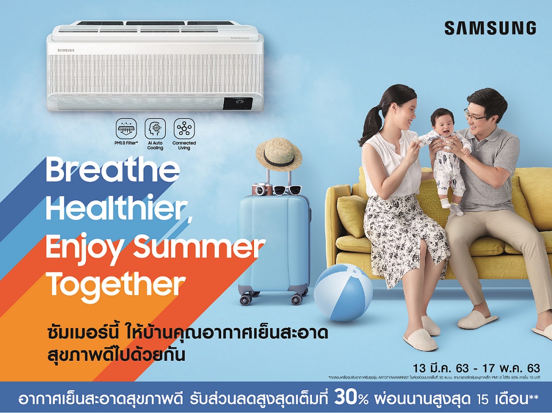 18 มีนาคม 2563 : ซัมเมอร์นี้อยู่บ้านได้อย่างปลอดภัย ปราศจากฝุ่นจิ๋วและไวรัส เย็นสุขภาพดีกันทั้งครอบครัว ด้วยเครื่องปรับอากาศที่ลดสูงสุดถึง 30% พร้อมของแถมสุดพิเศษอีกมากมาย กับโปรโมชั่นรับหน้าร้อน “Breathe Healthier, Enjoy Summer Together” จาก ซัมซุง อิเลคโทรนิคส์ ในฐานะผู้นำด้านนวัตกรรมและเทคโนโลยีระดับโลก