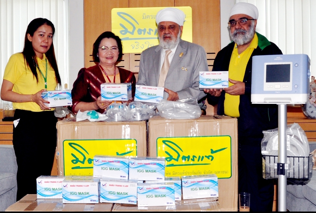 23 มีนาคม 2563 : สุระ จันทร์ศรีชวาลา ประธานกิตติมศักดิ์ บริษัท มิตรแท้ประกันภัย จำกัด (มหาชน) พร้อมด้วยสุขเทพ จันทร์ศรีชวาลา ประธานกรรมการบริหารและกรรมการผู้จัดการ ให้เกียรติเป็นประธานมอบเครื่องช่วยหายใจสำหรับผู้ป่วยที่ได้รับการหายใจแบบ Invasive และ Non Invasive พร้อมกับหน้ากากอนามัยอีกจำนวน 10,000 ชิ้น ให้แก่โรงพยาบาลรามาธิบดีเพื่อเป็นอุปกรณ์ทางการแพทย์ช่วยรักษาผู้ป่วยในสถานการณ์วิกฤต COVID-19 และเพื่อเป็นการร่วมช่วยสังคมไทยในภาวะที่อุปกรณ์ทางการแพทย์ขาดแคลนในปัจจุบันนี้