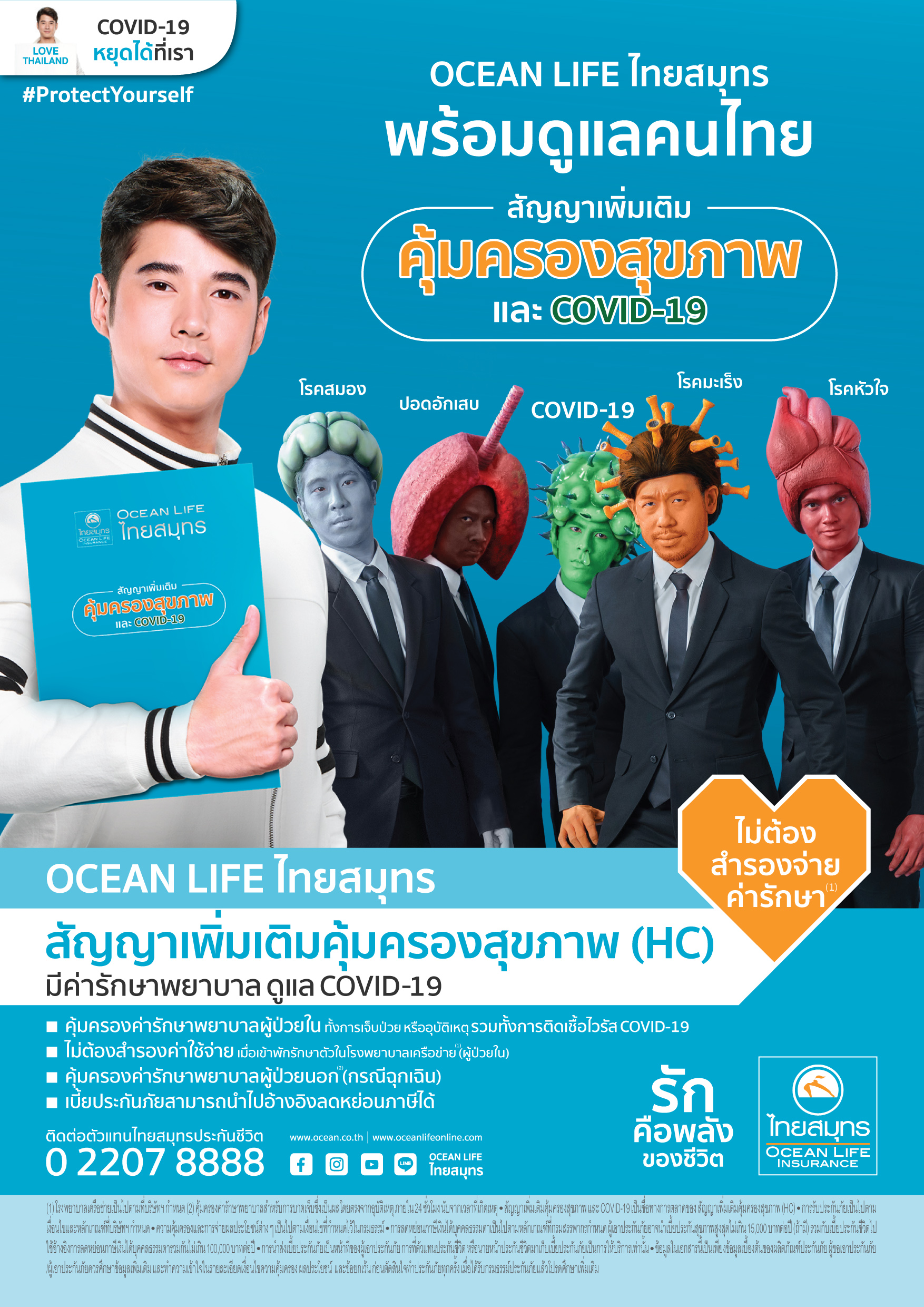 โดยให้ “มาริโอ้ เมาเร่อ” แบรนด์แอมบาสเดอร์สายรักสุขภาพ จับมือกับ “โอชิ” แบรนด์มาสคอต มานำเสนอสัญญาเพิ่มเติมคุ้มครองสุขภาพ (HC) มีค่ารักษาพยาบาล COVID-19 จาก OCEAN LIFE ไทยสมุทร เพื่อเป็นทางเลือกที่ดีกว่าสำหรับผู้ที่มองหาค่ารักษาพยาบาลทุกโรค พร้อมครอบคลุมโรค COVID-19 และเพื่อให้คนไทยหมดกังวลในเรื่องค่ารักษาพยาบาลกรณีต้องเข้าพักรักษาตัวในฐานะผู้ป่วยในที่โรงพยาบาล จากการเจ็บป่วย หรืออุบัติเหตุ รวมถึงการติดเชื้อไวรัส COVID-19 อีกทั้งยังให้ความคุ้มครองค่ารักษาพยาบาลผู้ป่วยนอกในกรณีอุบัติเหตุฉุกเฉินอีกด้วย