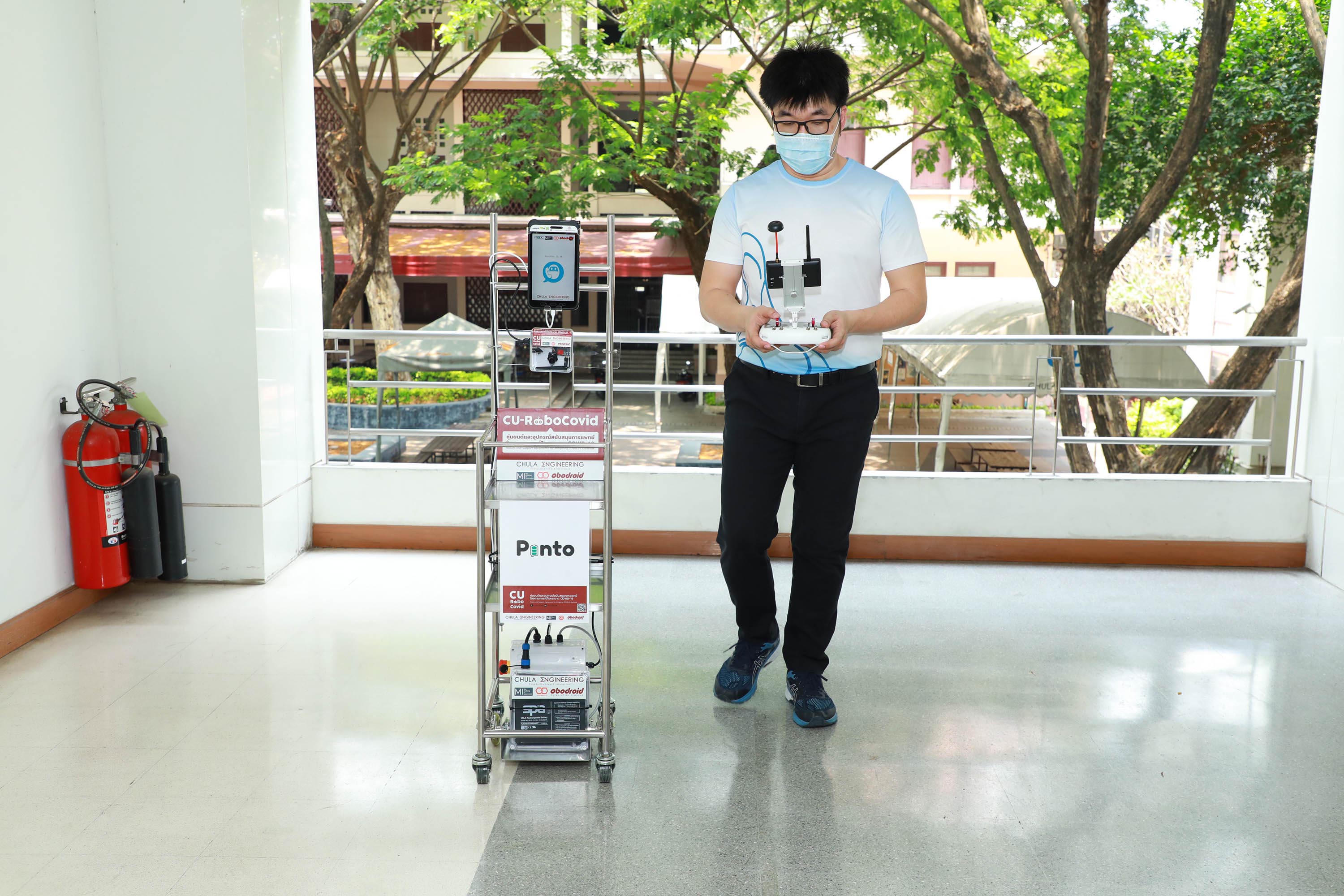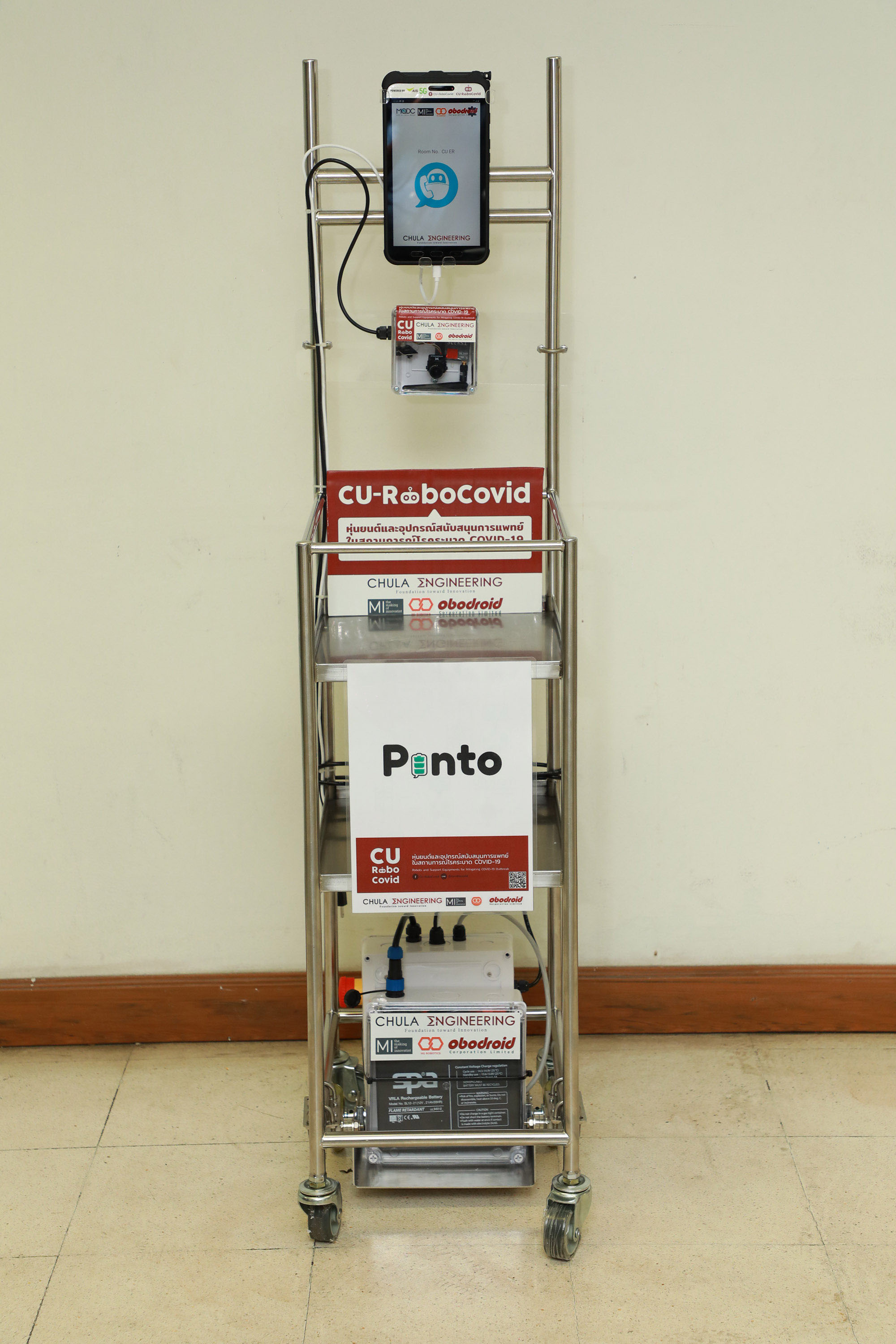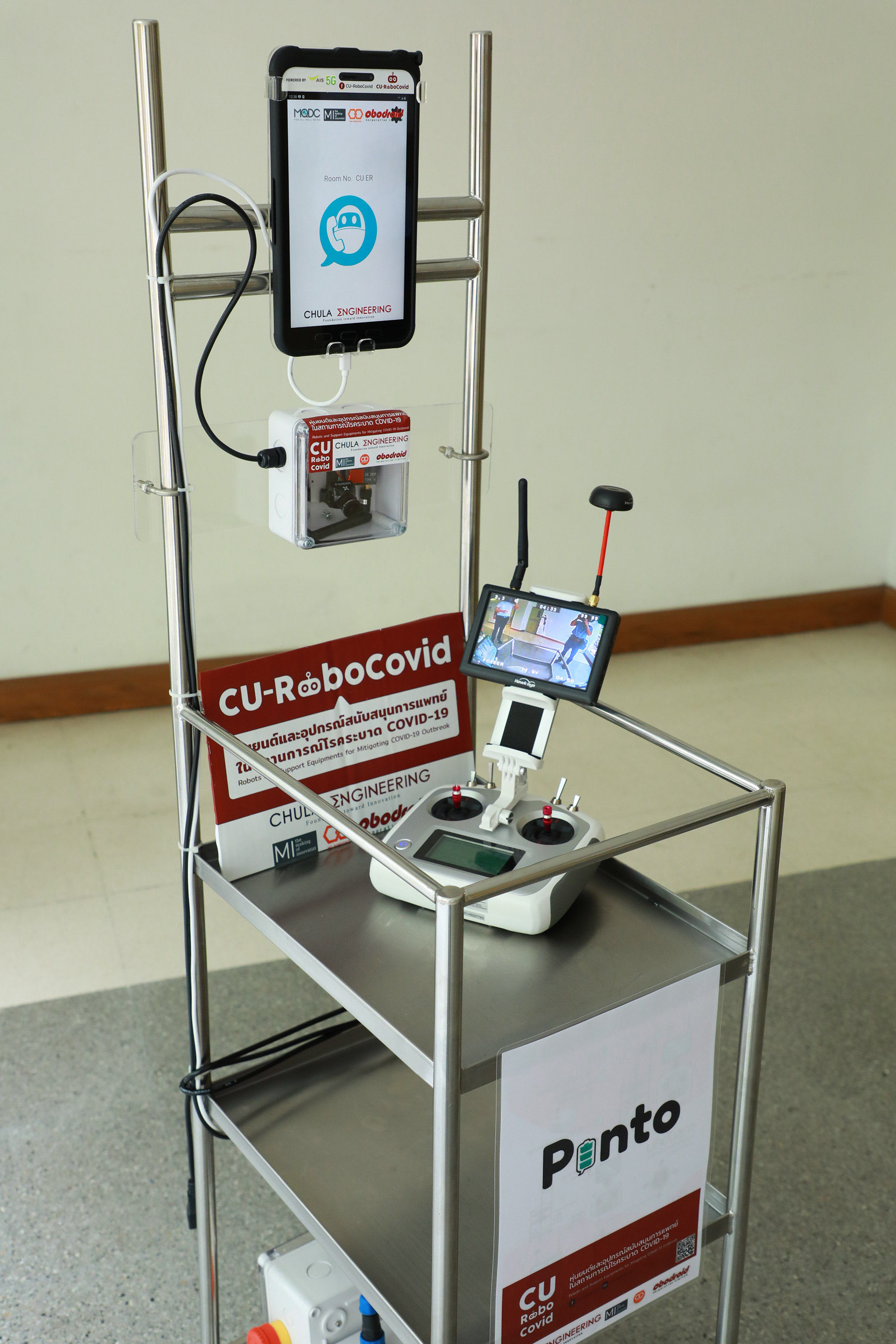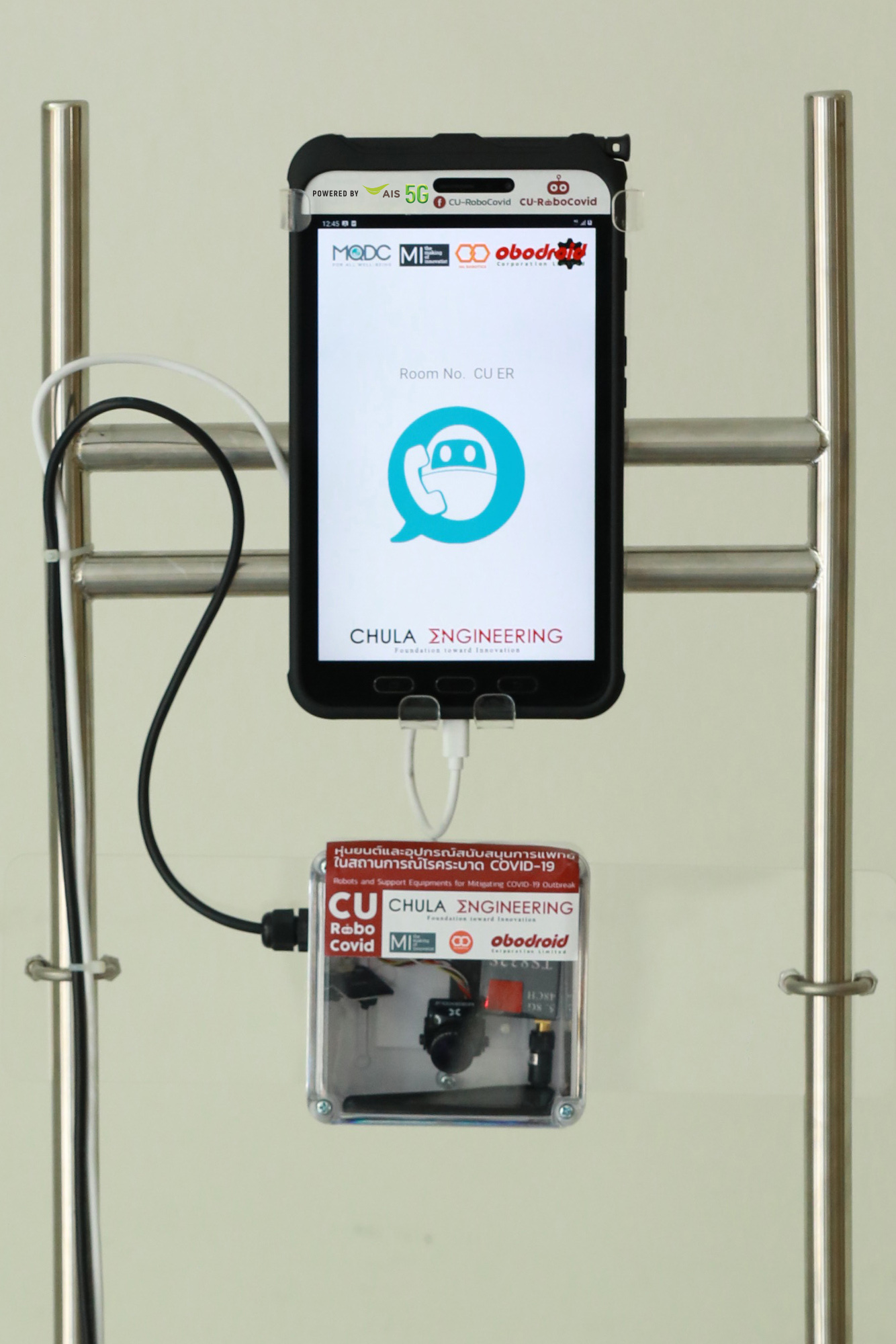 2. ช่วยในการสื่อสารระยะไกล ผ่านหน้าจอที่ติดอยู่ ณ รถเข็นด้วยการควบคุมทางไกลบนเครือข่ายสื่อสารไร้สาย ช่วยให้แพทย์ พยาบาล สามารถติดตามดูแลคนไข้ได้ตลอดเวลา โดยระบบนี้จะช่วยลดทั้งอุปกรณ์ทางการแพทย์ที่ต้องทิ้งทุกครั้ง เมื่อเปลี่ยนโซนการตรวจ และลดระยะเวลาการเข้าใกล้ชิดผู้ป่วยติดเชื้อของบุคลากรทางการแพทย์