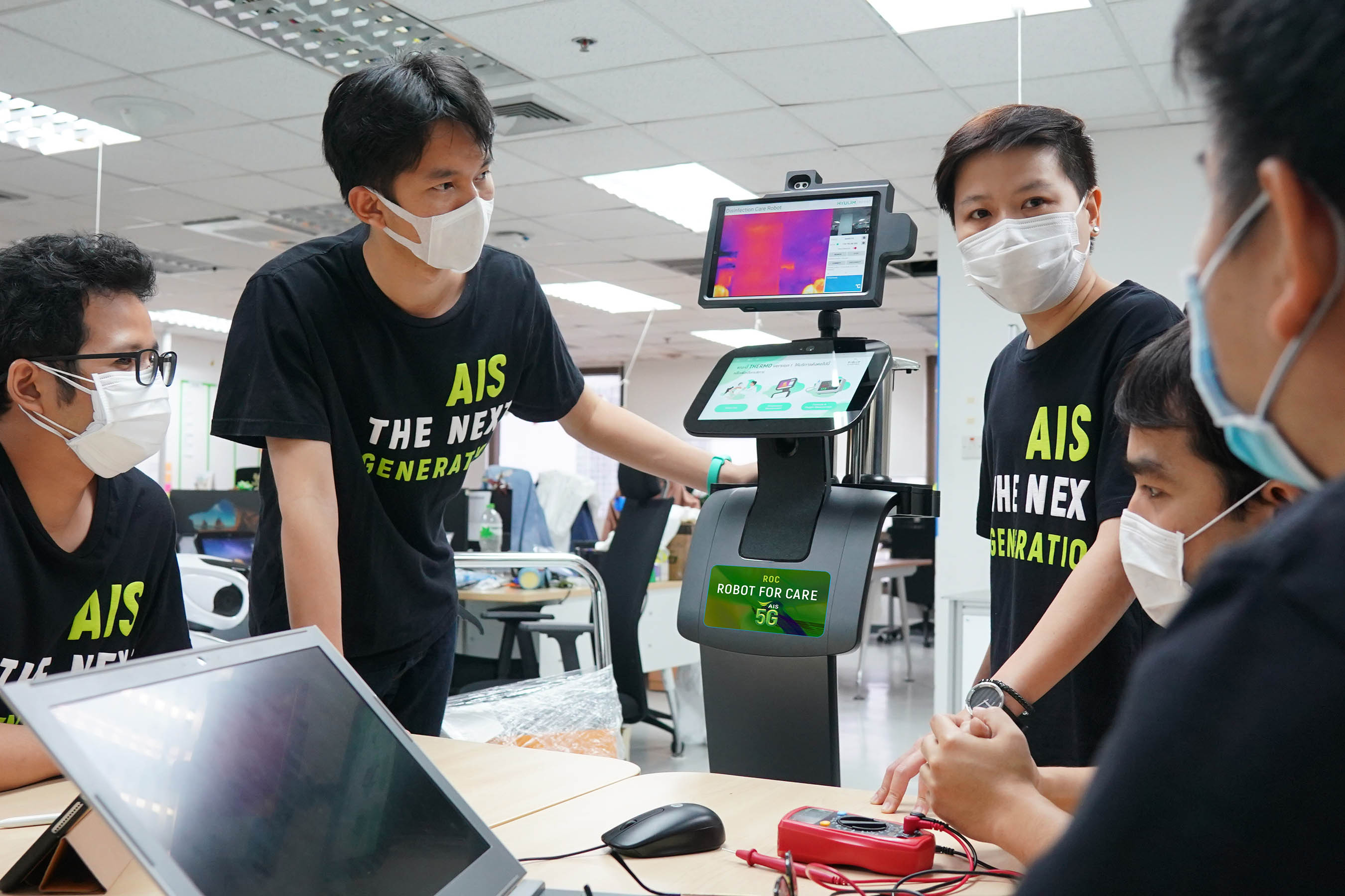 17 เมษายน 2563 : นายวสิษฐ์ วัฒนศัพท์ หัวหน้าฝ่ายงานปฏิบัติการและสนับสนุนด้านเทคนิคทั่วประเทศ เอไอเอส กล่าวว่า “ตามที่เอไอเอส ได้ประกาศวิสัยทัศน์ นำศักยภาพเครือข่าย 5G ที่ทรงพลานุภาพ และความรู้ความเชี่ยวชาญของคนเอไอเอส มาร่วมแรงร่วมใจ ช่วยแก้ปัญหาโควิด-19 เพื่อช่วยเหลือคนไทยและประเทศไทยของเราผ่านพ้นวิกฤตครั้งนี้ไปให้ได้ วันนี้ เราได้ทุ่มสรรพกำลังเครือข่าย 5G ตลอดจนระดมนักวิจัยและผู้เชี่ยวชาญที่มากด้วยประสบการณ์การพัฒนาหุ่นยนต์ของเอไอเอส จัดตั้งทีมเฉพาะกิจ AIS ROBOTIC LAB by AIS NEXT โดยมีเป้าหมายที่จะพัฒนาหุ่นยนต์ทางการแพทย์ ทำงานบนเครือข่าย 5G เพื่อสร้างประโยชน์ให้กับทางการแพทย์ใช้งานจริง