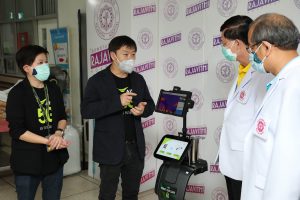 – Telemedicine ระบบปรึกษาทางไกลระหว่างแพทย์และผู้ป่วยผ่านวิดีโอคอล เพื่อให้แพทย์ที่อยู่ด้านนอกห้อง ใช้สมาร์ทดีไวซ์ เชื่อมต่อมาที่ตัวหุ่นยนต์ เพื่อพูดคุยและดูอาการคนไข้ภายในห้องพักได้ ช่วยหลีกเลี่ยงการเข้ามาสัมผัสหรือใกล้ชิดกับผู้ป่วยโดยตรงได้