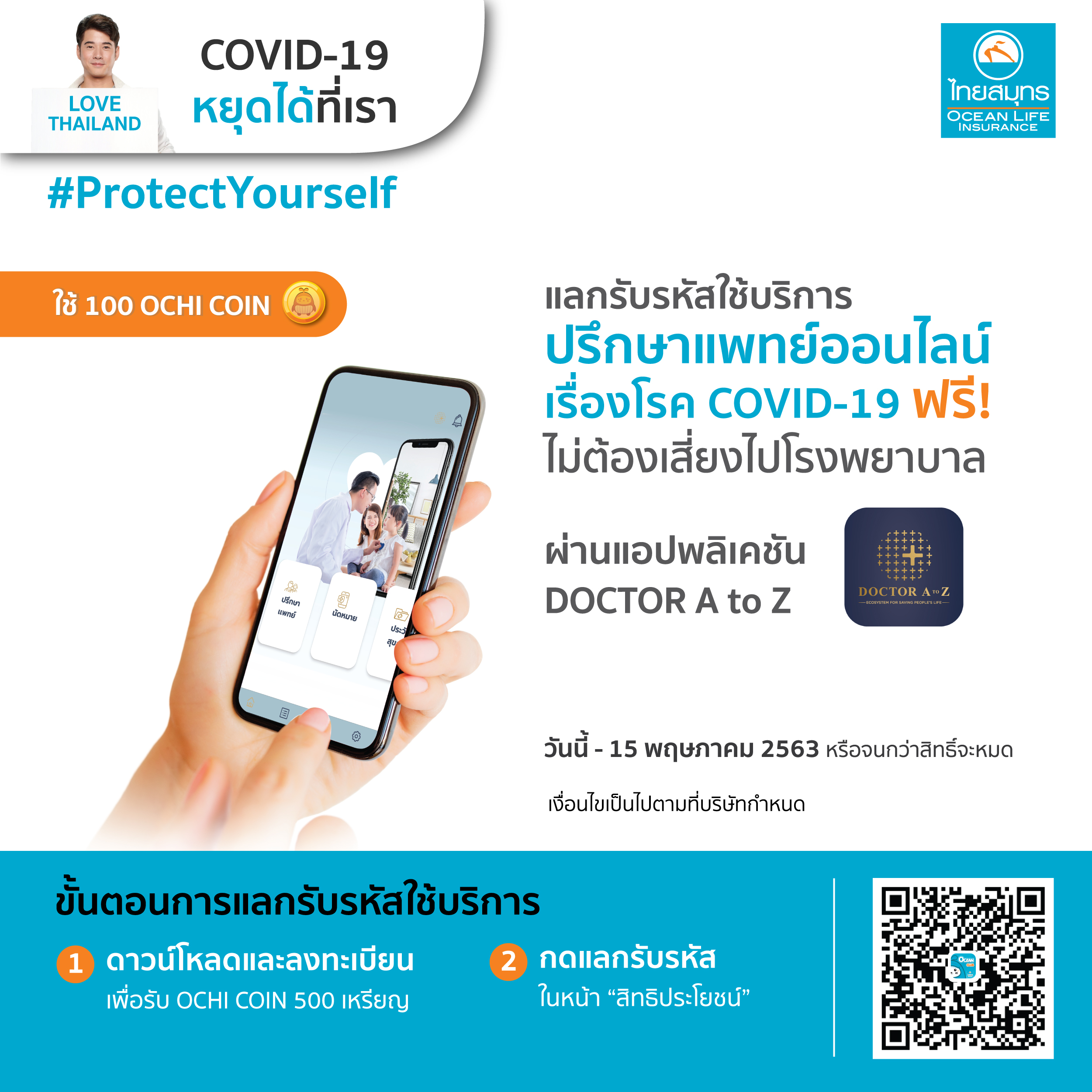 ทั้งนี้ เพื่อลดความเสี่ยงจากการติดเชื้อหากต้องไปพบแพทย์ที่โรงพยาบาล ด้วยวิธีง่าย ๆ เพียงดาวน์โหลด OCEAN CLUB APP และใช้ OCHI COIN 100 เหรียญ แลกรับรหัสการใช้บริการปรึกษาแพทย์ออนไลน์เฉพาะโรค COVID-19 สามารถกดแลกรับรหัสการใช้บริการได้ตั้งแต่วันนี้ – 15 พฤษภาคม 2563 หรือจนกว่ารหัสการใช้บริการจะครบ 1,500 รหัส OCEAN LIFE ไทยสมุทรยืนยันพร้อมดูแลลูกค้าในทุกสถานการณ์ เราจะผ่านวิกฤตนี้ไปด้วยกัน #LoveThailandProtectYourself ![]()