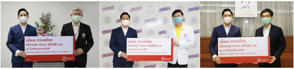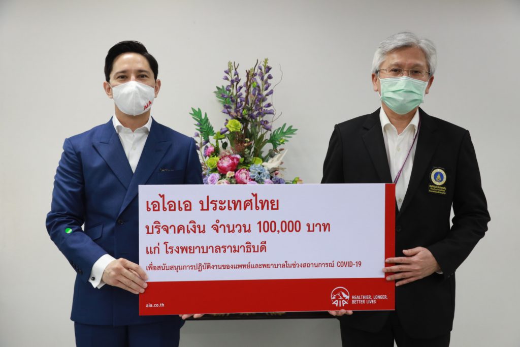 30 เมษายน 2563 : กฤษณ์ จันทโนทก ประธานเจ้าหน้าที่ฝ่ายตัวแทนประกันชีวิต เอไอเอ ประเทศไทย เป็นตัวแทนมอบเงินบริจาคให้แก่โรงพยาบาลรามาธิบดี โรงพยาบาลราชวิถี และสถาบันมะเร็งแห่งชาติ โรงพยาบาลละ 100,000 บาท รวมเป็นเงินบริจาคทั้งสิ้น 300,000 บาท เพื่อสนับสนุนการปฏิบัติงานของสถานพยาบาลในการให้ความช่วยเหลือและรักษาพยาบาลประชาชนคนไทยในช่วงสถานการณ์การแพร่ระบาดของโรคโควิด-19 ครั้งนี้ ซึ่งเงินบริจาคดังกล่าวมาจากการร่วมแรงร่วมใจของตัวแทนประกันชีวิตเอไอเอ