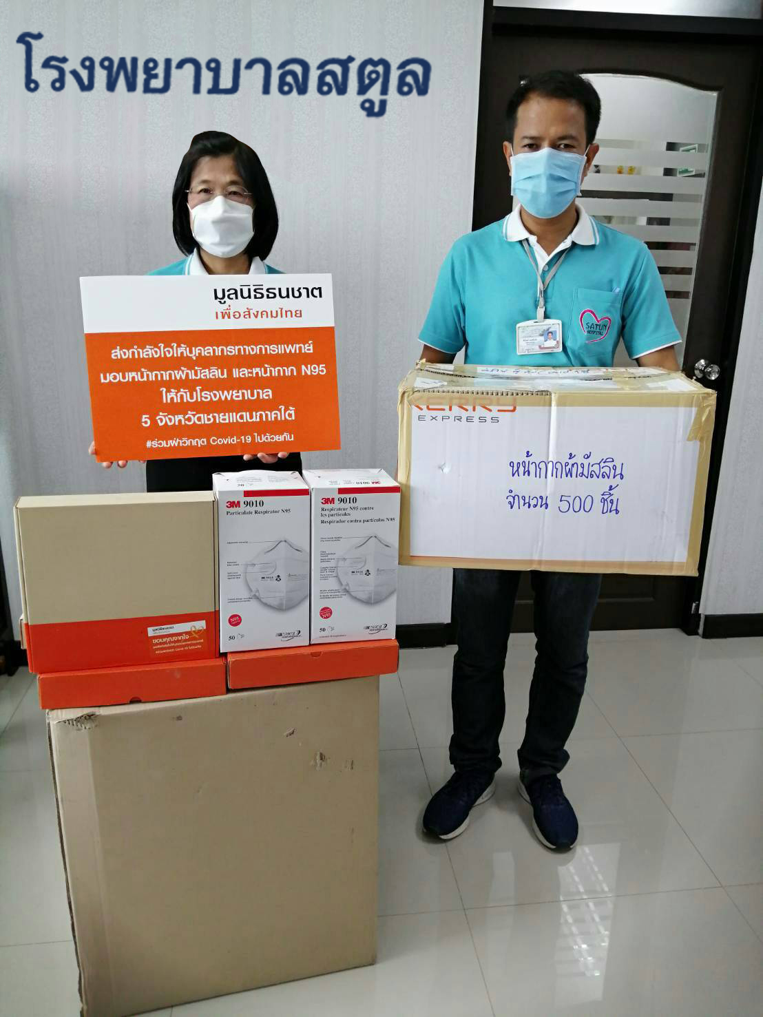 4 พฤษภาคม 2563 : มูลนิธิธนชาตเพื่อสังคมไทย ส่งกำลังใจให้กับบุคลากรทางการแพทย์ที่ทุ่มเทร่วมต่อสู้กับการแพร่ระบาดของเชื้อไวรัสโคโรน่า 2019 (COVID-19) โดยมอบหน้ากากผ้ามัสลิน และหน้ากาก N 95 ให้กับโรงพยาบาลประจำจังหวัด 5 จังหวัดชายแดนภาคใต้ ประกอบด้วย โรงพยาบาลศูนย์ยะลา โรงพยาบาลสงขลา โรงพยาบาลปัตตานี โรงพยาบาลนราธิวาสราชนครินทร์ และโรงพยาบาลสตูล ซึ่งโรงพยาบาลเหล่านี้อยู่ในพื้นที่ที่มีการแพร่ระบาดของเชื้อโควิดอยู่ในอันดับสูงของประเทศ ![]()