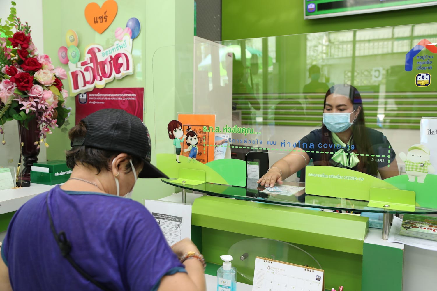 ในขณะนี้ ธ.ก.ส. ได้เริ่มทยอยนัดหมายลูกค้ามานัดสัญญาพร้อมกันทั่วประเทศ ตามสาขาที่ลูกค้าเลือกไว้ในขั้นตอนลงทะเบียน โดยร่วมดำเนินการตามหลักการเว้นระยะห่างทางสังคมหรือ Social Distancing เพื่อลดปริมาณจำนวนผู้ใช้บริการที่สาขาไม่ให้แออัดจนเกินไป และหลังจากทำสัญญาแล้วจะมี SMS แจ้งผล หากสินเชื่อได้รับการอนุมัติระบบจะทำการโอนเงินเข้าบัญชีเงินฝากโดยตรงภายใน 1 วัน ซึ่งท่านสามารถถอนเงินสดผ่านตู้ ATM โดยใช้บัตร ATM บัตรเดบิตหรือบริการกดเงินไม่ใช้บัตรผ่านแอปพลิเคชั่น ธ.ก.ส. A-Mobile