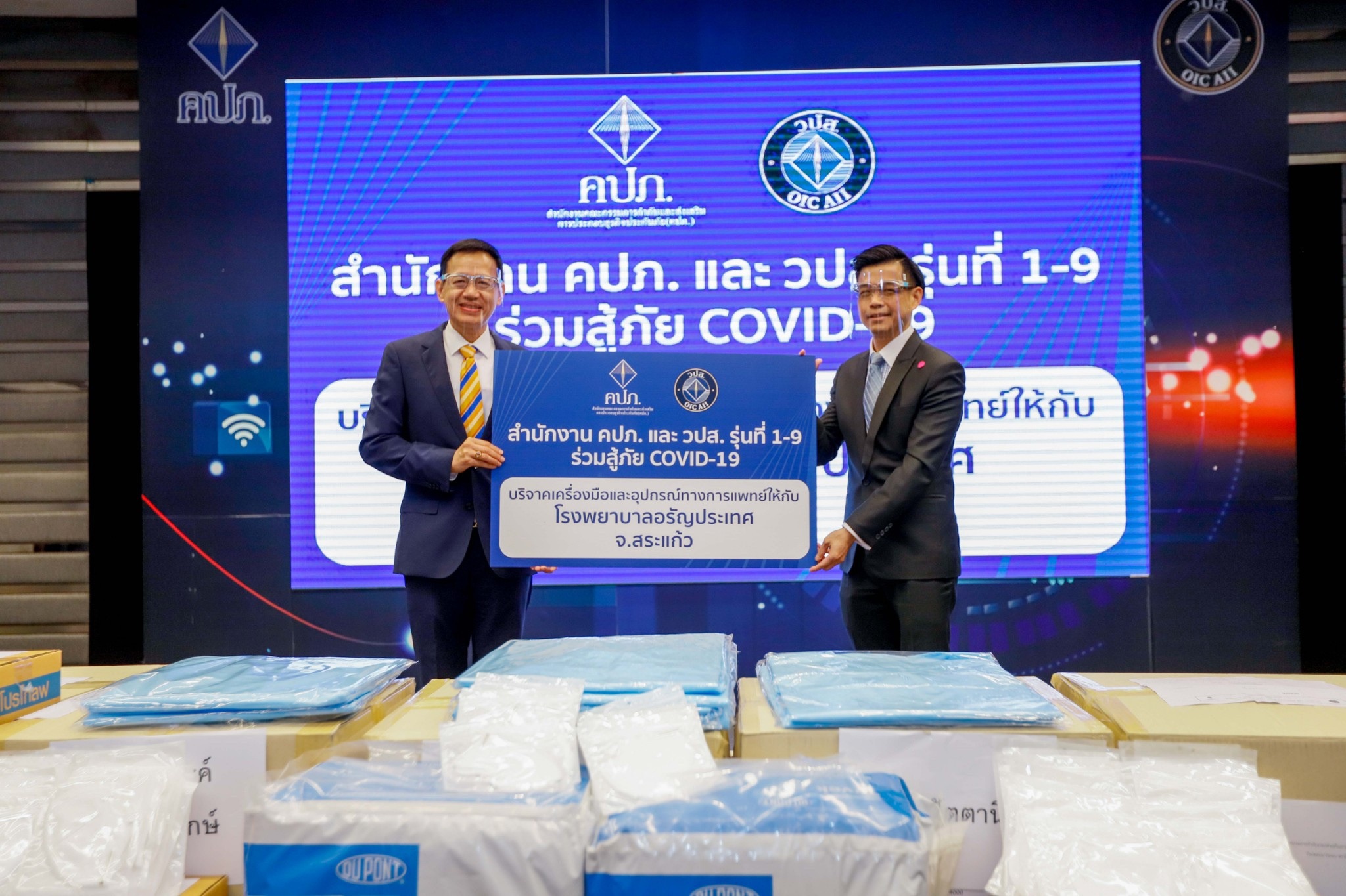 นอกจากนี้ สำนักงาน คปภ. ยังได้รับการสนับสนุนจากผู้มีจิตศรัทธาร่วมบริจาค ตู้อบรังสี UVC สำหรับ อบหน้ากากจากกลุ่ม SOS to Medical Staff in COVID–19 แอลกอฮอล์ 75% สำหรับล้างมือ จากบริษัท ไทยเบฟเวอเรจ จำกัด (มหาชน) จำนวน 5,000 ลิตร และแอลกอฮอล์ทำความสะอาด จำนวน 2,200 ลิตร จากบริษัท ดั๊บเบิ้ล เอ (1991) จำกัด (มหาชน)