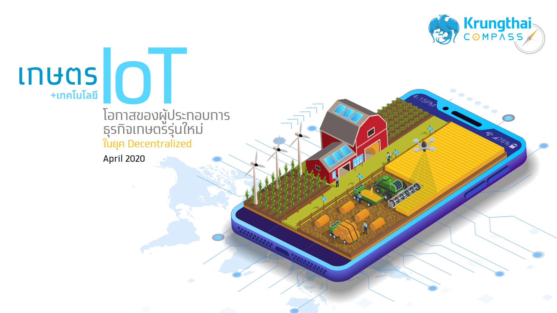 14 พฤษภาคม 2563 : ศูนย์วิจัยธนาคารกรุงไทย ระบุเทคโนโลยีการเกษตร โดยเฉพาะเทคโนโลยี IoT เป็นทางออกของธุรกิจการเกษตร เพิ่มขีดความสามารถในการแข่งขัน ทำให้เกษตรกรรุ่นใหม่ประสบความสำเร็จได้ง่ายขึ้น เพิ่มความแม่นยำในการเพาะปลูก ช่วยให้สามารถบริหารจัดการการผลิตด้วยตัวเองจากฐานข้อมูลที่เป็นเรียลไทม์ ลดต้นทุนการผลิตและความเสียหายจากสภาพภูมิอากาศ เพิ่มโอกาสให้กับผู้ประกอบการ SMEs ใน 3 กลุ่มหลัก ที่มีมูลค่าตลาดรวมกว่า 1 แสนล้านบาท และเป็นหนึ่งในเทคโนโลยีแห่งอนาคตที่ภาครัฐส่งเสริมอย่างจริงจัง เพื่อเป็น Smart Farmer