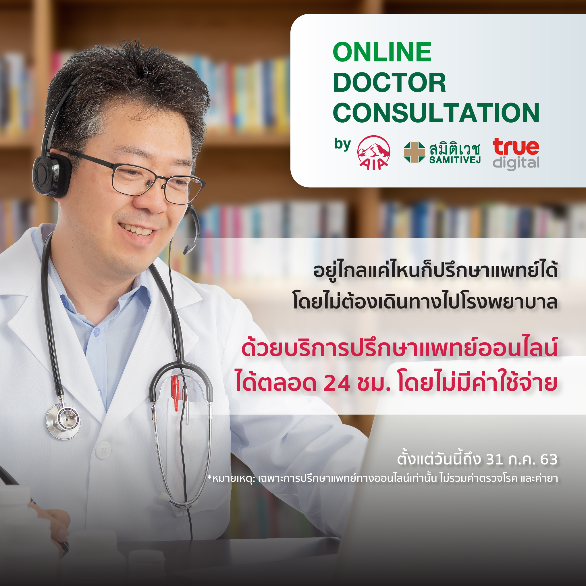 14 พฤษภาคม 2563 : เอไอเอ ประเทศไทย ร่วมกับ ทรู ดิจิทัล กรุ๊ป และเครือโรงพยาบาลสมิติเวช ต่อยอดความสำเร็จของบริการปรึกษาแพทย์ผ่านระบบออนไลน์ ซึ่งได้เริ่มเปิดให้ใช้บริการไปครั้งแรกเมื่อเดือนเมษายนที่ผ่านมา และมีเสียงตอบรับที่ดี ดังนั้น จึงได้ร่วมมือกันขยายบริการให้ครอบคลุมมากยิ่งขึ้น ผ่านบริการ ‘Online Doctor Consultation’ ที่ไม่ว่าอยู่ไกลแค่ไหน ก็สามารถปรึกษาแพทย์ได้ทุกโรค โดยไม่ต้องเดินทางมาโรงพยาบาล อาทิ โรคภูมิแพ้ ไข้หวัดใหญ่ โรคติดเชื้อระบบทางเดินหายใจส่วนบน โรคติดเชื้อทางเดินปัสสาวะ โรคเบาหวาน โรคความดัน หรือกลุ่มอาการที่พบบ่อย เช่น ปวดหลังส่วนล่าง หรือผื่นแพ้ผิวหนัง