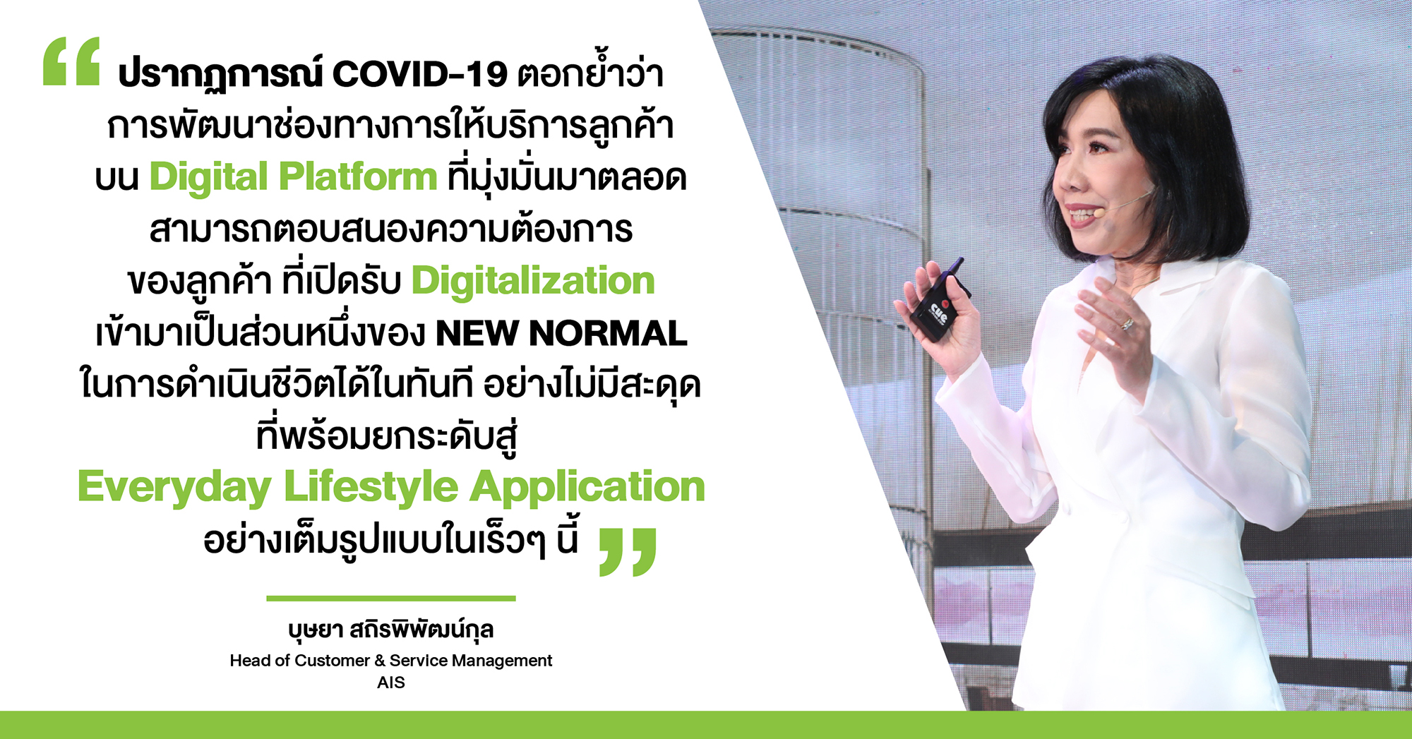 นางบุษยา สถิรพิพัฒน์กุล Head of Customer & Service Management – AIS กล่าวว่า “ตลอดช่วง Lockdown กว่า 2 เดือนที่ผ่านมา เอไอเอส มีการเตรียมความพร้อมงานบริการลูกค้ามาอย่างต่อเนื่อง นับตั้งแต่การแพร่ระบาดเข้าสู่ประเทศไทย ด้วยศักยภาพและความมืออาชีพของบุคลากรจึงทำให้การจัดทัพการดูแลลูกค้าสามารถเกิดขึ้นได้อย่างสมบูรณ์ครบทุกกระบวนการในเวลาอันรวดเร็ว ผสานเข้ากับเทคโนโลยีอัจฉริยะ ที่เราพัฒนามาก่อนหน้าอย่างต่อเนื่อง เพื่ออำนวยความสะดวกให้ลูกค้าใช้บริการได้แบบไร้รอยต่อ ไม่มีสะดุด ตลอด 24 ชั่วโมง ผ่าน Digital Platform ที่เราได้ทุ่มสรรพกำลัง เตรียมระบบให้มีความพร้อมรองรับมากกว่าเดิม ตั้งแต่ช่วงที่สถานการณ์เริ่มส่งสัญญาณรุนแรงยิ่งขึ้น จึงเป็นที่มาที่ทำให้เรา