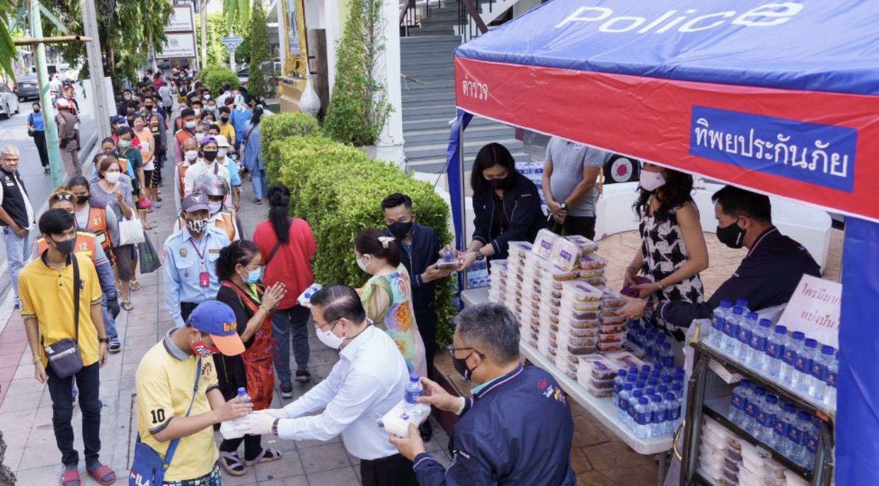 22 พฤษภาคม 2563 : ดร.สมพร สืบถวิลกุล กรรมการผู้จัดการใหญ่ คุณวิชชุดา ไตรธรรม ที่ปรึกษากรรมการผู้จัดการใหญ่ พร้อมผู้บริหารและพนักงาน ทิพยประกันภัย ที่มีจิตอันเป็นกุศล จัดกิจกรรม “TIP ปันอิ่ม น้ำใจชาวทิพยหลั่งไหล สู้ภัยโควิด” โดยรวบรวมเงินบริจาคส่วนตัวจากผู้บริหารและพนักงานที่ต้องการช่วยเหลือแบ่งปันตามจิตศรัทธา เพื่อนำไปจัดซื้อข้าวกล่องพร้อมน้ำดื่มทิพย