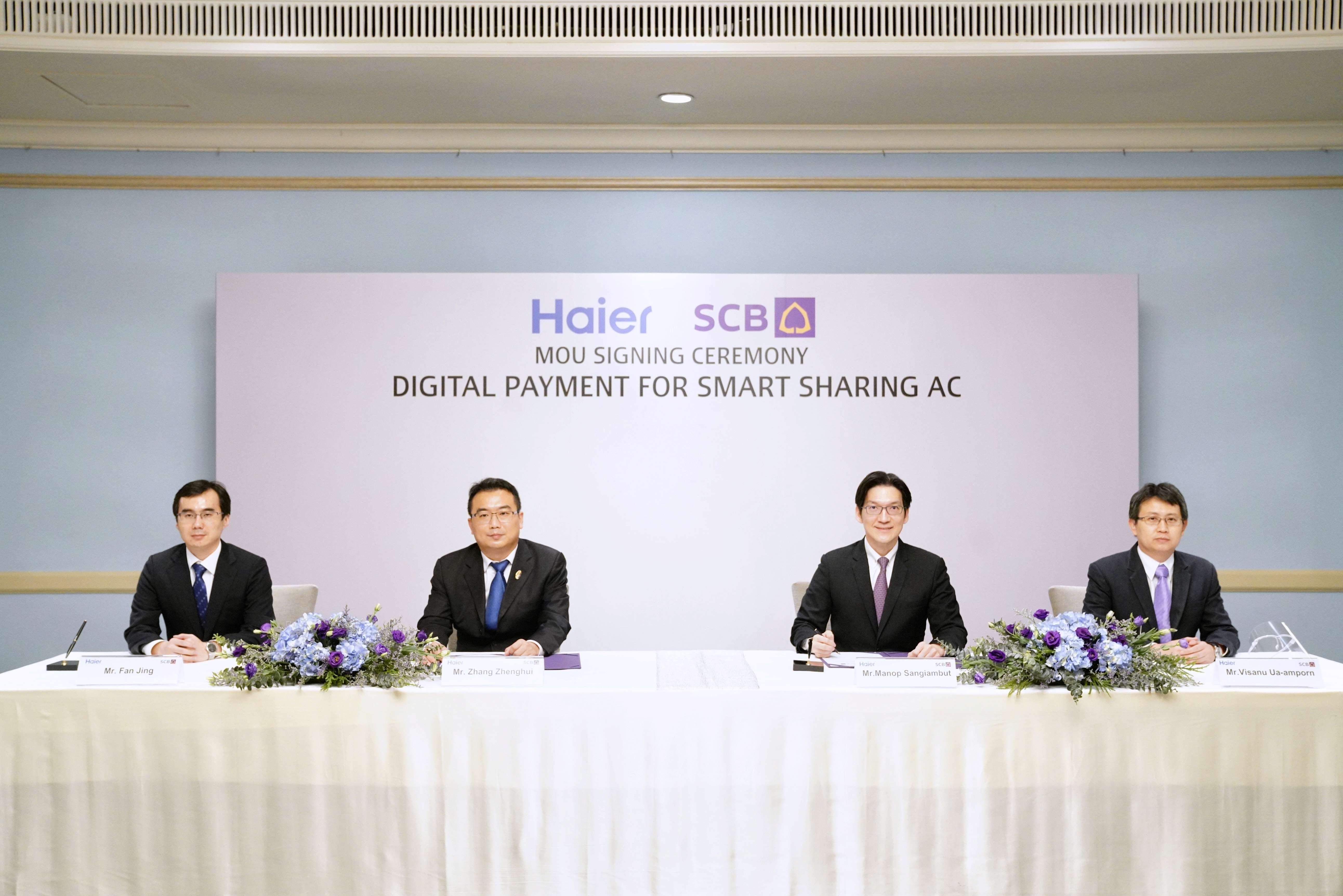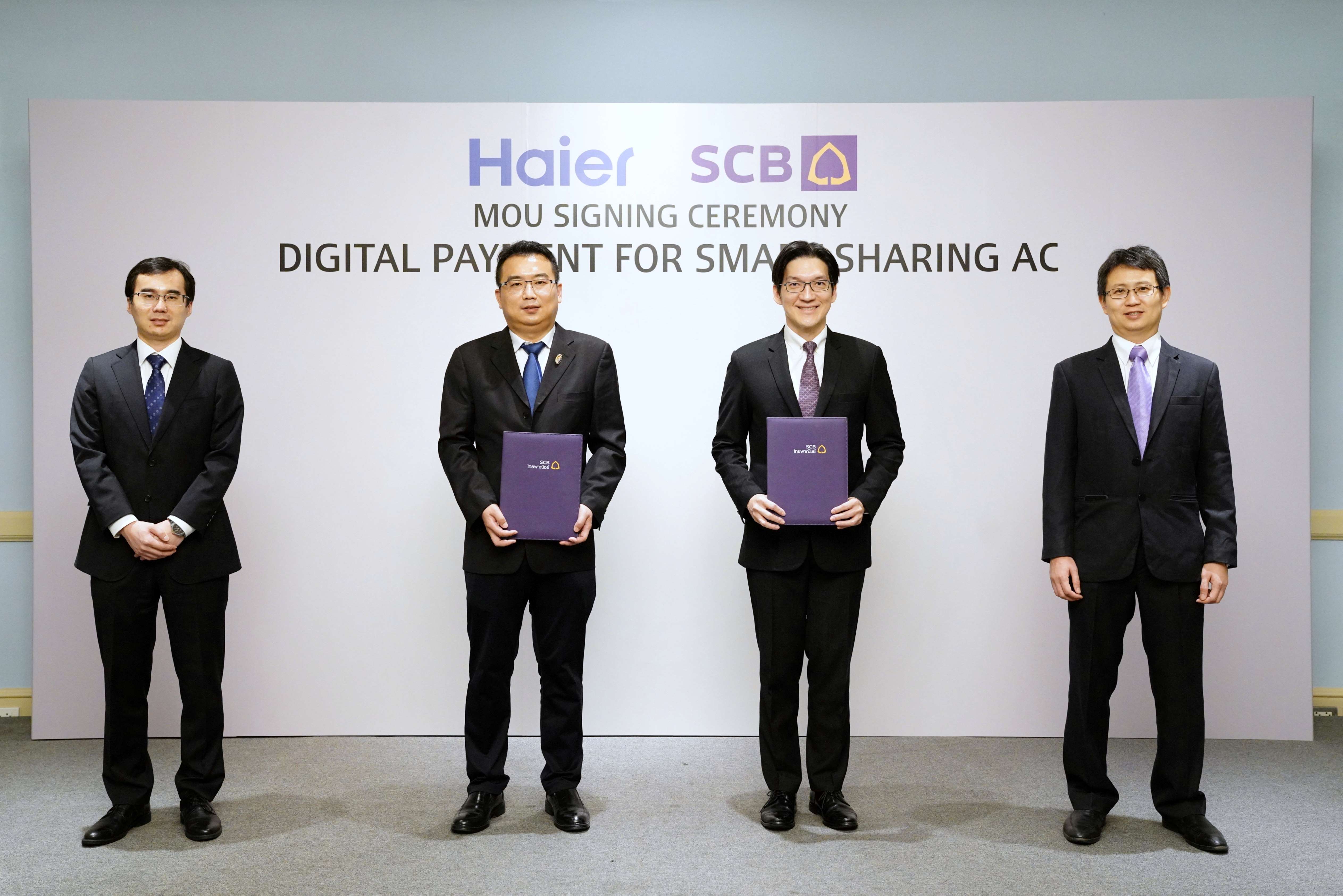 นายมาณพ เสงี่ยมบุตร รองผู้จัดการใหญ่ สายงานธุรกิจจีน ธนาคารไทยพาณิชย์ กล่าวว่า “ธนาคารไทยพาณิชย์ พร้อมสนับสนุนธุรกิจของผู้ประกอบการจีนทุกด้านอย่างเต็มความสามารถ โดยจะเห็นได้ชัดว่าจีนเป็นประเทศที่ลงทุนกับการคิดค้นและพัฒนาเทคโนโลยีอย่างต่อเนื่อง ธนาคารรู้สึกยินดีที่ได้ร่วมผสานความแข็งแกร่งทางการเงินดิจิทัลเข้ากับไฮเออร์ โดยเชื่อว่าแคมเปญ “Smart Sharing AC เย็นดีแค่ 4 บาท” ภายใต้ Haier Smart Home นี้ จะสร้างการเปลี่ยนแปลงสำคัญให้เกิดขึ้นกับวงการเครื่องใช้ไฟฟ้า และตอบโจทย์วิถีชีวิตผู้บริโภคในยุคปัจจุบันได้อย่างดี ในโครงการนี้ ธนาคารได้เชื่อมโยงแพลตฟอร์ม Digital Payment Solutions อำนวยความสะดวกทางด้านการชำระค่าบริการผ่านทางแอปพลิเคชัน SCB Easy ซึ่งปัจจุบันมีผู้ใช้งานมากกว่า 11 ล้านราย เพิ่มความสะดวก รวดเร็ว และปลอดภัยให้กับผู้ใช้บริการพร้อมยังสนับสนุนแนวคิดสังคมไร้เงินสดได้อย่างมีประสิทธิภาพ”