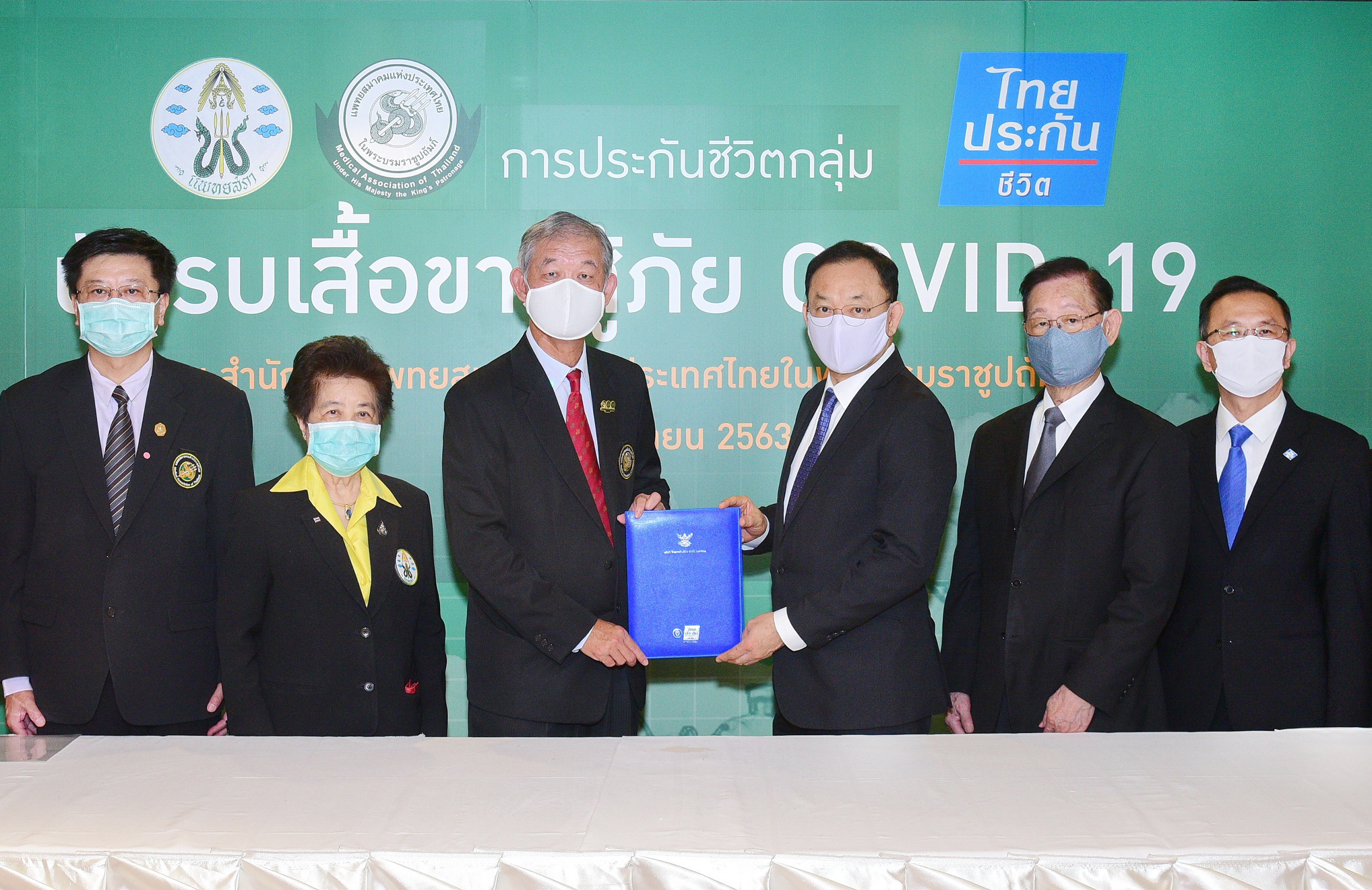 ร่วมกับมูลนิธิหนึ่งคนให้ หลายคนรับ รณรงค์บริจาคเงินสมทบทุนจัดซื้ออุปกรณ์ทางการแพทย์เพื่อมอบให้กับโรงพยาบาลต่างๆ การสนับสนุนศิริราชมูลนิธิ (ศิริราชสู้ภัยโควิด) เชิญชวนไทยประกันชีวิตจิตอาสาร่วมบริจาคเพื่อจัดซื้อเครื่องเอกซเรย์คอมพิวเตอร์ ความเร็วสูงยิ่งยวดช่วยวินิจฉัยผู้ป่วยติดเชื้อโควิด-19 ตลอดจนมอบสิ่งของจำเป็น และร่วมส่งกำลังใจให้ทีมแพทย์ที่ทำงานด้วยความทุ่มเทและเสียสละ