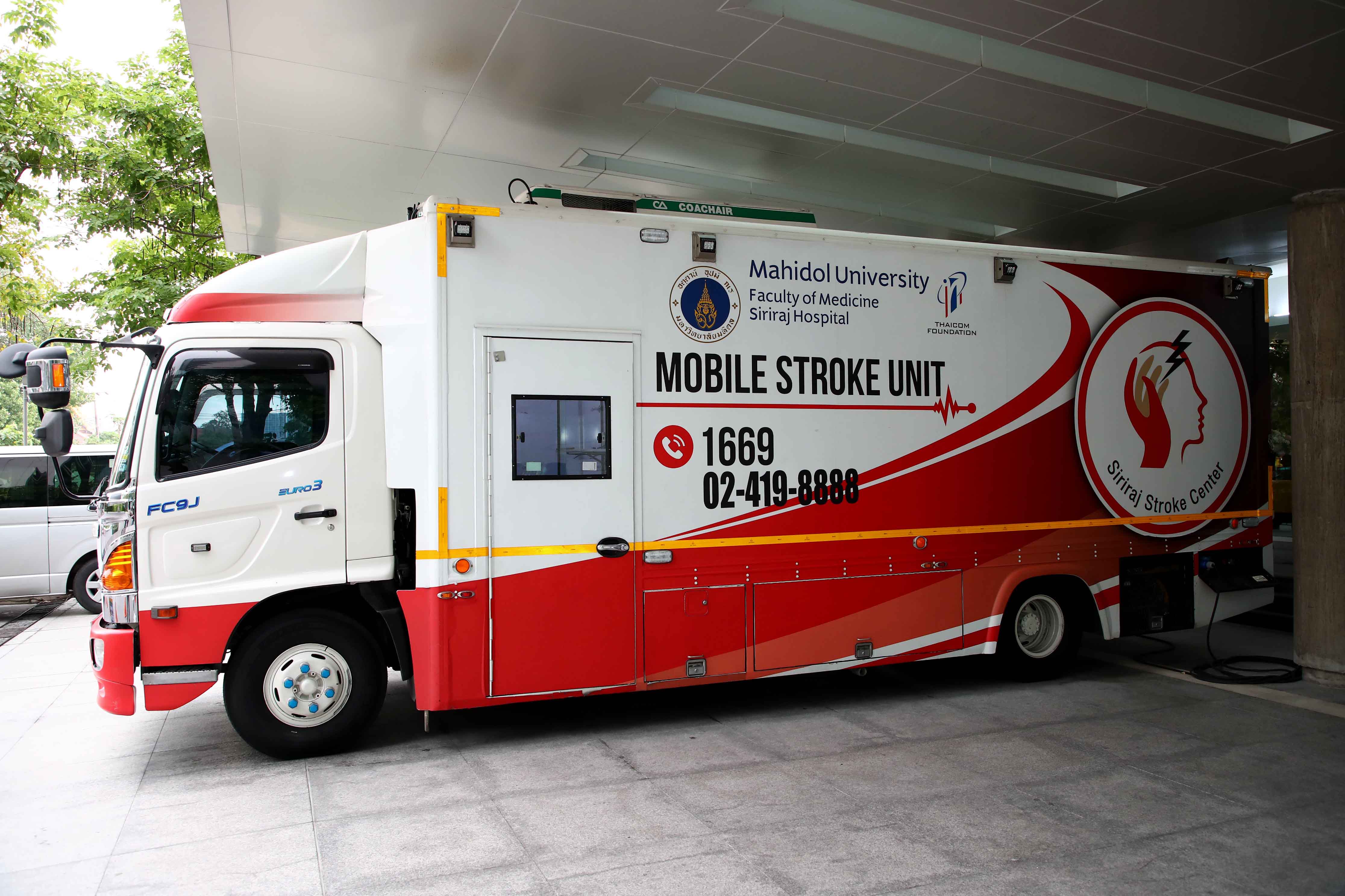 ขณะเดียวกันทางศูนย์เอราวัณก็แจ้งหน่วยรักษาอัมพาตเคลื่อนที่ศิริราช (Siriraj Mobile Stroke Unit) ที่มีผู้เชี่ยวชาญโรคหลอดเลือดสมองเป็นผู้รับสายและซักถามอาการ และตามทีมแพทย์ พยาบาล นักรังสีการแพทย์ และพนักงานขับรถ ให้ออกปฏิบัติการรับผู้ป่วย เพื่อการรักษาในรถของหน่วยรักษาอัมพาตเคลื่อนที่ศิริราช (Siriraj Mobile Stroke Unit) ที่จุดนัดพบ ตามที่ได้ประสานงานไว้แล้ว ขณะนี้ รถรุ่นใหม่ หน่วยรักษาอัมพาตเคลื่อนที่ศิริราช 2020 จำนวน 3 คัน อยู่ระหว่างการผลิต กำหนดแล้วเสร็จของรถคันที่ 2 ประมาณเดือนสิงหาคม 2563 และคันที่ 3 และ 4 จะแล้วเสร็จภายในปี 2563”